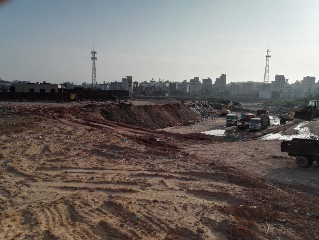 这两天均可看到垃圾车从沙场路口进去的那条路进去,现已看到垃圾小山。怪不得昨晚又臭气熏天,原来如此。