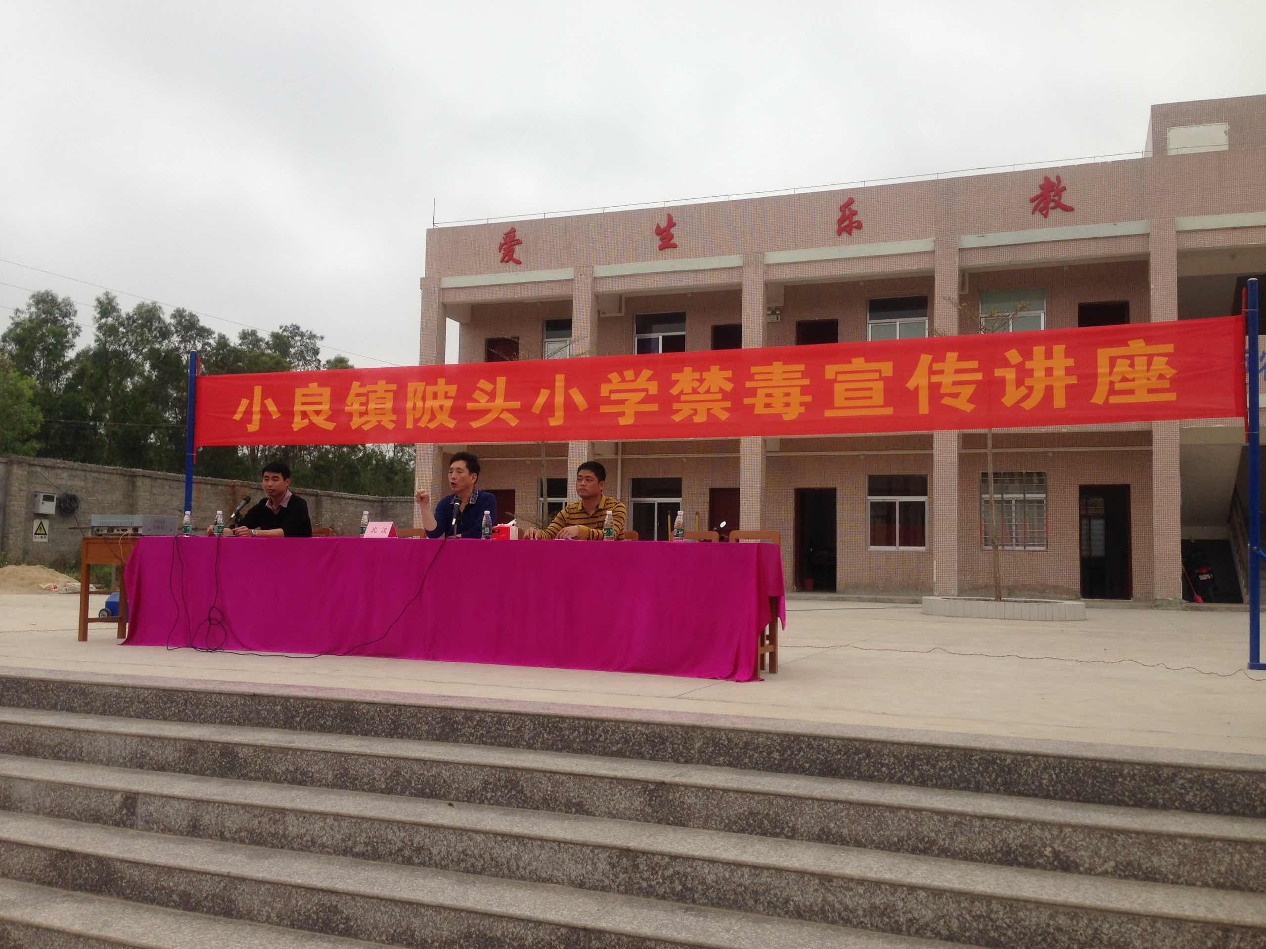 继小良镇召开禁毒誓师大会后,2016年3月23日上午,陂头小学联合村委会驻村律师在校园内举行禁毒宣传讲座。镇政府挂片干部、村委会干部、学校全体师生共380多人参加了此次会议。