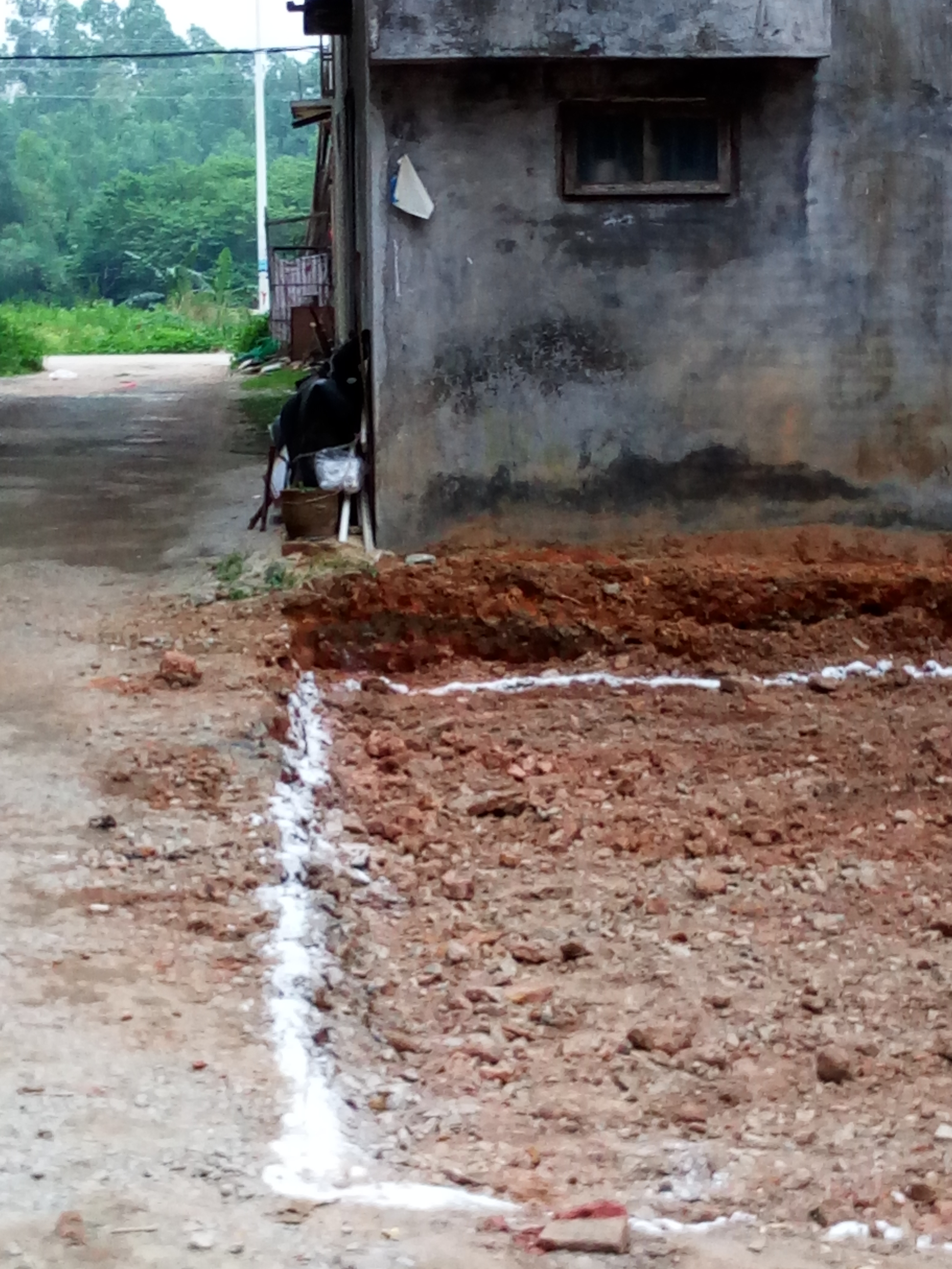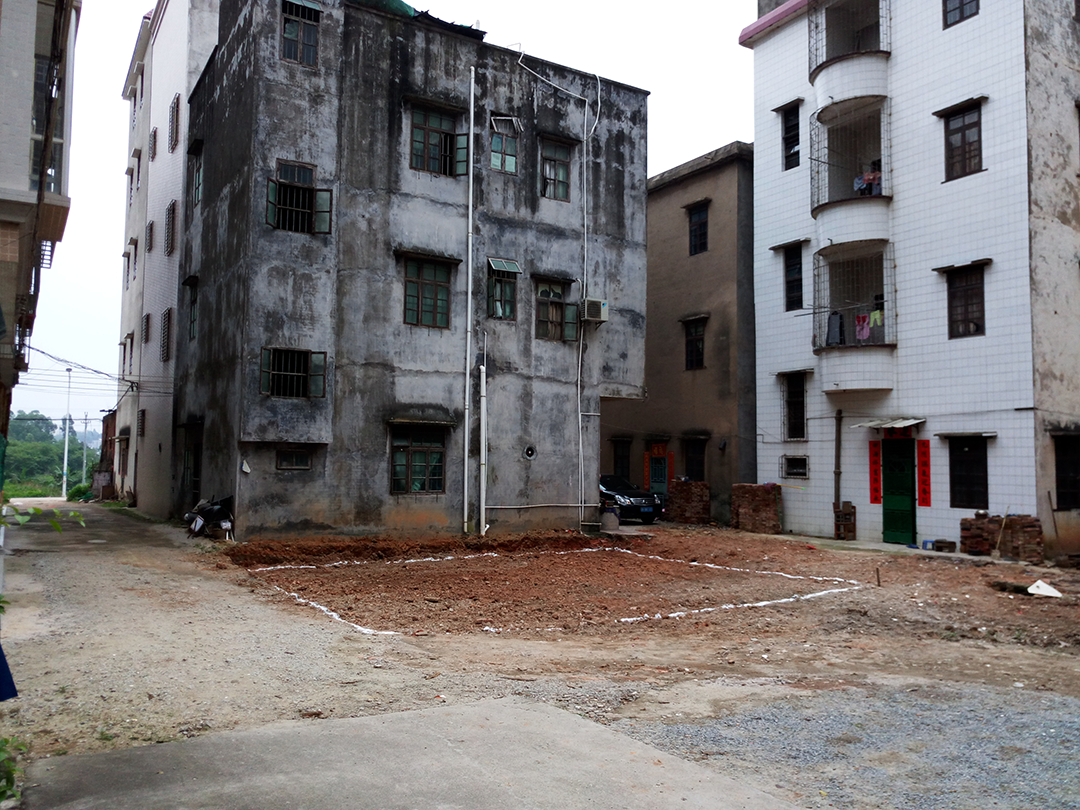 已经建好的房子都是打平建的,这栋新建的却整体向后移动了几十公分。