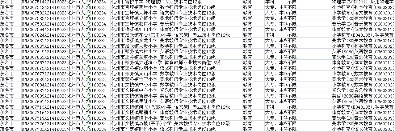 教师招聘遮遮掩掩,从来不敢公开,茂名的其他地方都发招聘公告了,电白的还没有踪影。信宜化州高州还招很多本地的大专生,电白的却连本科生都不要,电白真是人才济济呀??大学毕业生找不到工作,谁还愿意读书?