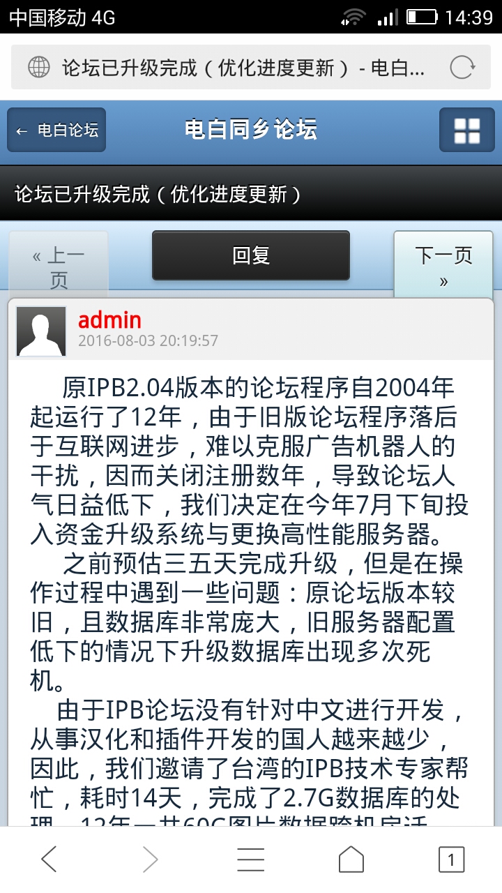 清心 说: Screenshot_2016-08-22-14-39-02.jpeg 在手机上看时只能选择下一页或上一页,能任意选择进入的页面吗?或者直接进入是最后一页。 点击展开... 这个手机版为了适应手指头点击,只能是这样,你可以切换到手机版V2,V2可以点击页码,切换方法:点击下方的电脑版,然后点击左下角的切换电脑/手机版,选择手机版v2。