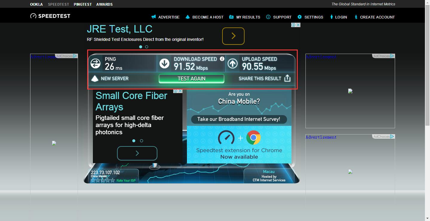 移动的上行是几十M的,但好像是共享出去的,IP会跳动。