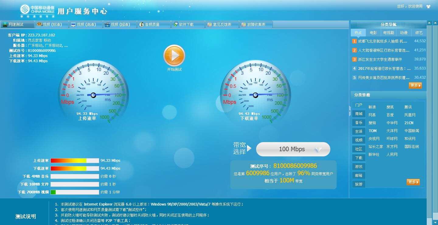 点对点单线程还是电信快,移动只是多线程测速才快,装网络不只是迅雷下载,网页与一般应用、游戏没办法与电信比。