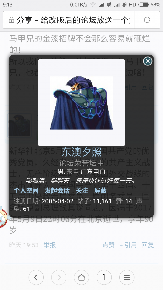 找 找你妹 博士后 注册 2016-12-19 消息 1,667 反馈评分 471 点数 191 所在地 霞洞浮山岭顶土洞草寮房167号 2017-05-10 #238 hchcc 说: 我相信有戏 点击展开... 我也相信! 马甲兄的金漆招牌不会那么容易就砸烂的! 所以我们一边等一边打趣作弄阿马甲兄,也都算是欢力无限,快乐无边咯!