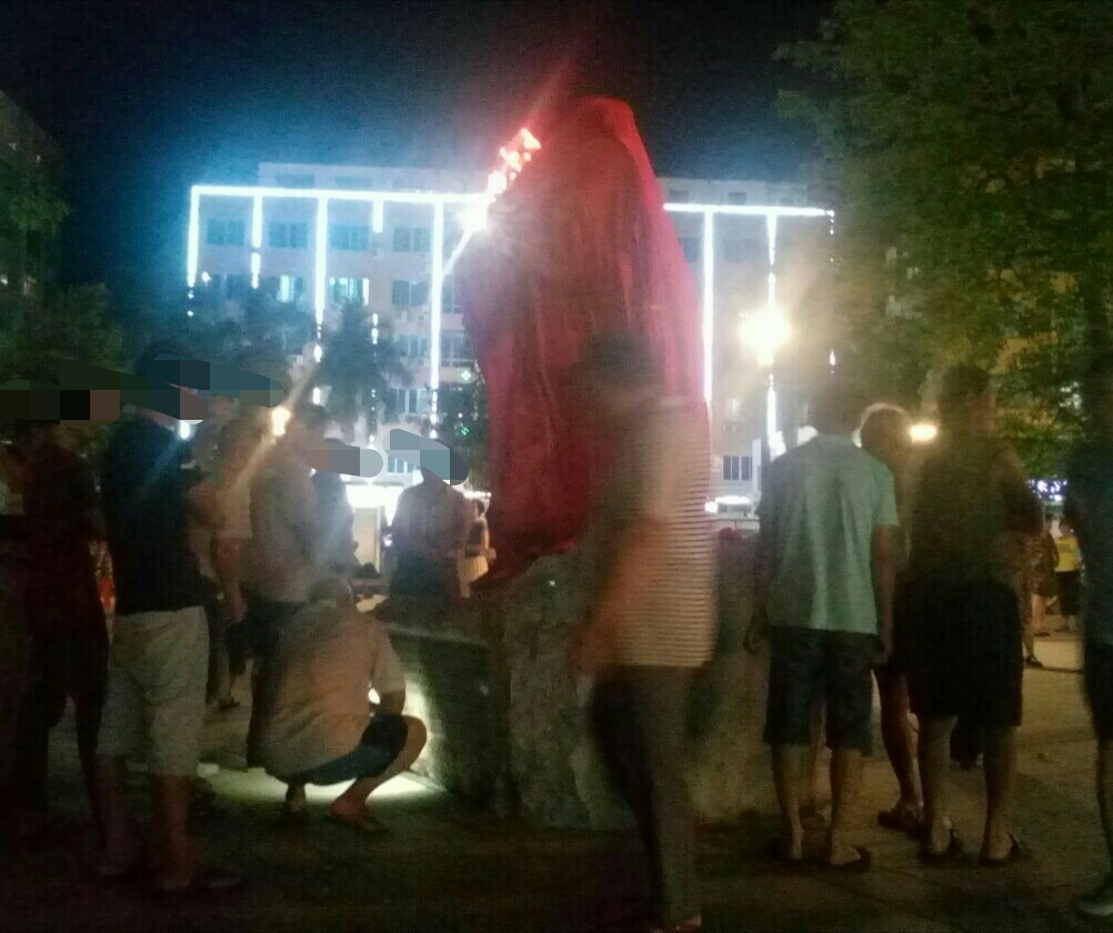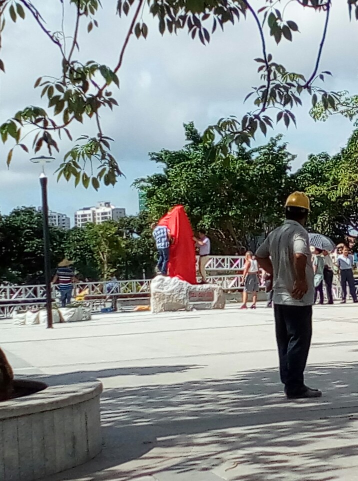 原来有个老伯伯在管看,听他说昨天整天晚已看管一夜了~幸苦了:he:,希望个别群众暂不要乱揭红布,揭幕后就有得看了!还希望以后能共同爱护好!!!