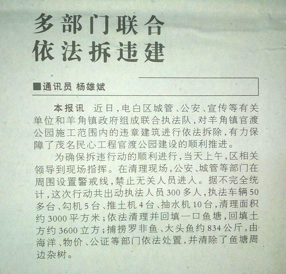 [FONT=楷体]羊角之前违建非常严重,宗族势力都很强大,曾经拆违建相当困难,后来电白区派出德高望重的区人大副主任梁陈杰同志过去处理才得以顺利拆清,如果是由茂名市或茂南区去拆根本拆不了,就算拆得了也会分分钟出人命。