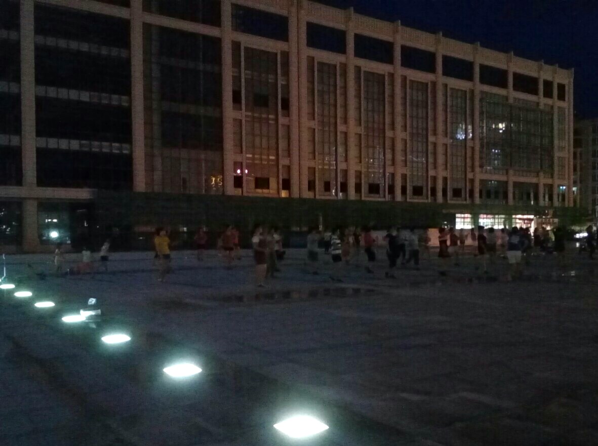 地面开着照射,有广场大妈跳舞,有点热闹~~