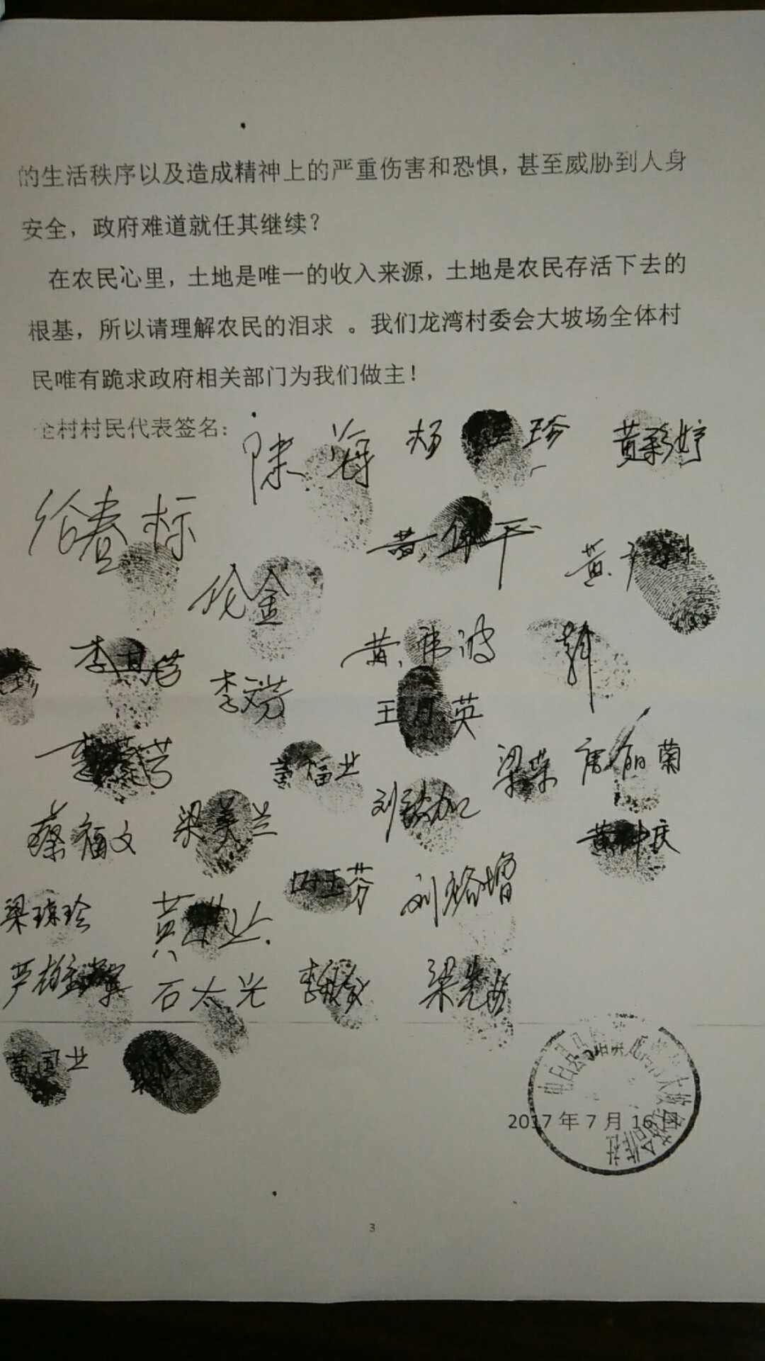 再根据@不知道叫什么名字 网友提供2017年7月16日的上访信照片,