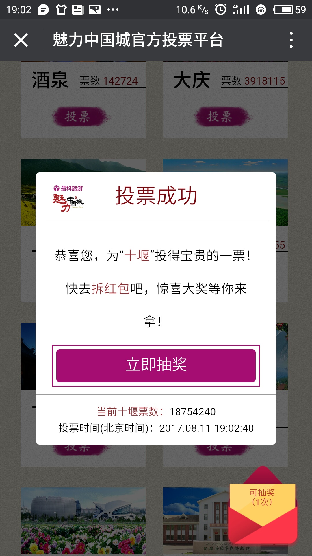 茂名投票抽奖抽中哈尔滨景点门票。黑龙江抽中茂名景点门票,这就是耍流氓行为,我敢说盈科一分钱红包都没发出。
