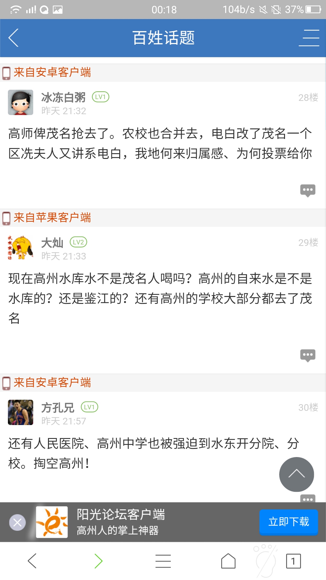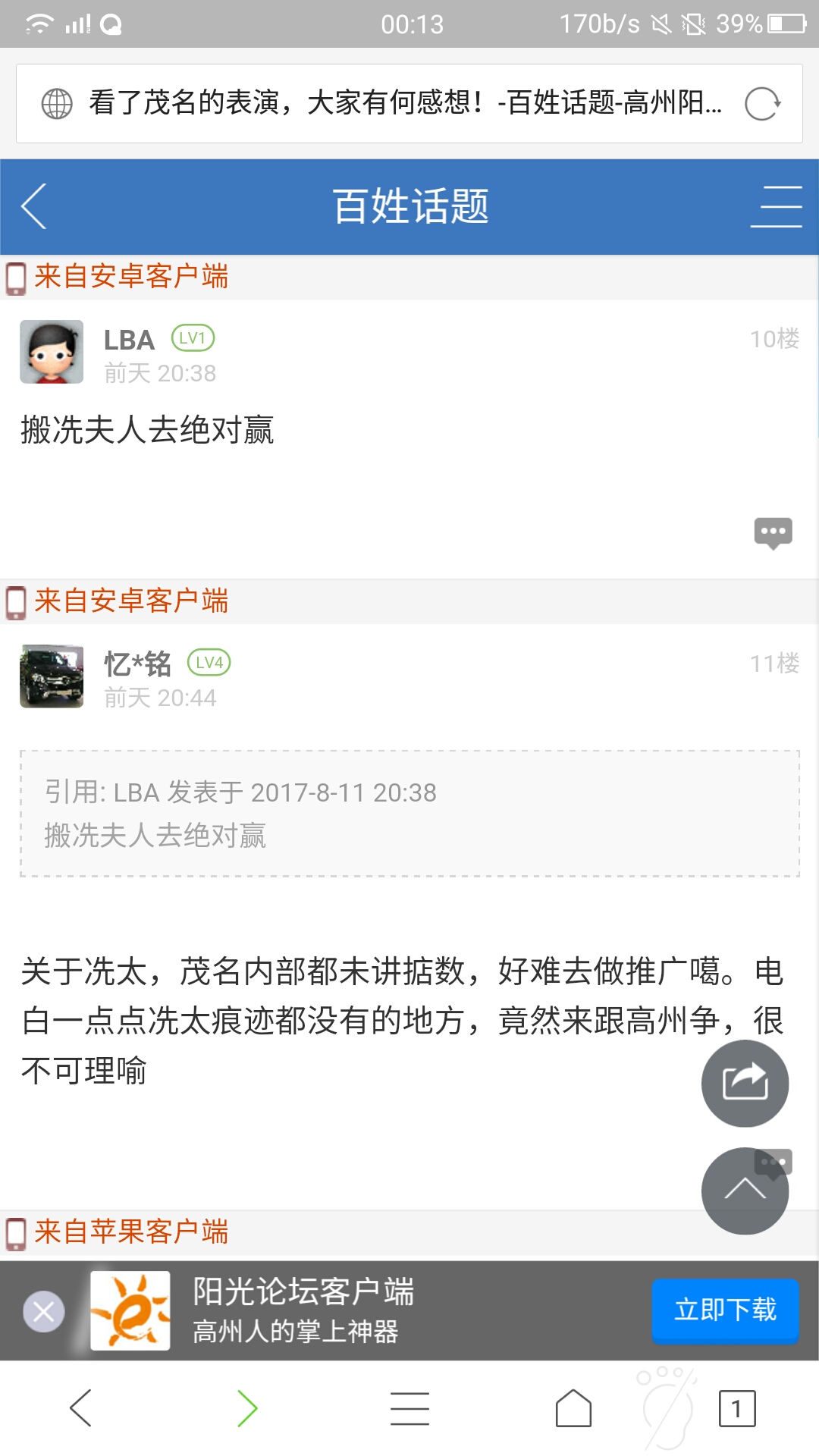 缘 缘聚 幼儿园 注册 2017-08-10 消息 11 反馈评分 2 点数 0 性别 男 2017-08-12 #7 ,自从参加这个节目,感觉全茂名市民都在喷电白了 附件 Screenshot_20170812-205753.jpg 405.3 KB · 查看: 781 Screenshot_20170812-205719.jpg 496.3 KB · 查看: 741
