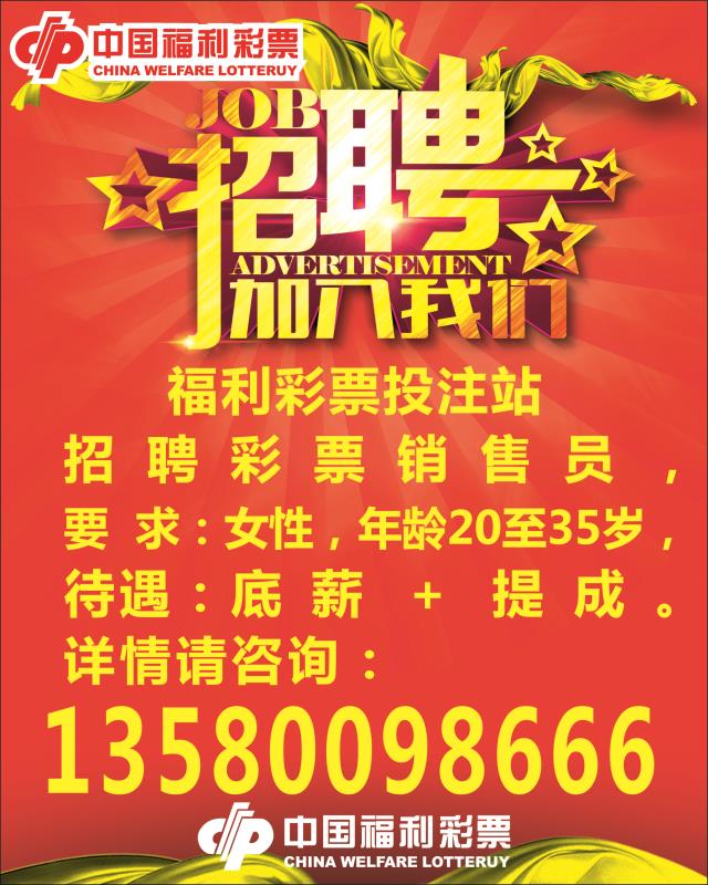 高薪招聘 因业务发展需要,福利彩 票投注站(水东)招聘彩票 销售人员若干名,年龄要求 20-35岁,限女性,上班地点 在水东,上班工作轻松,操 作简单,待遇优厚( 底薪+ 提成) 欢迎有意者前来应聘。 招聘电话:13580098666