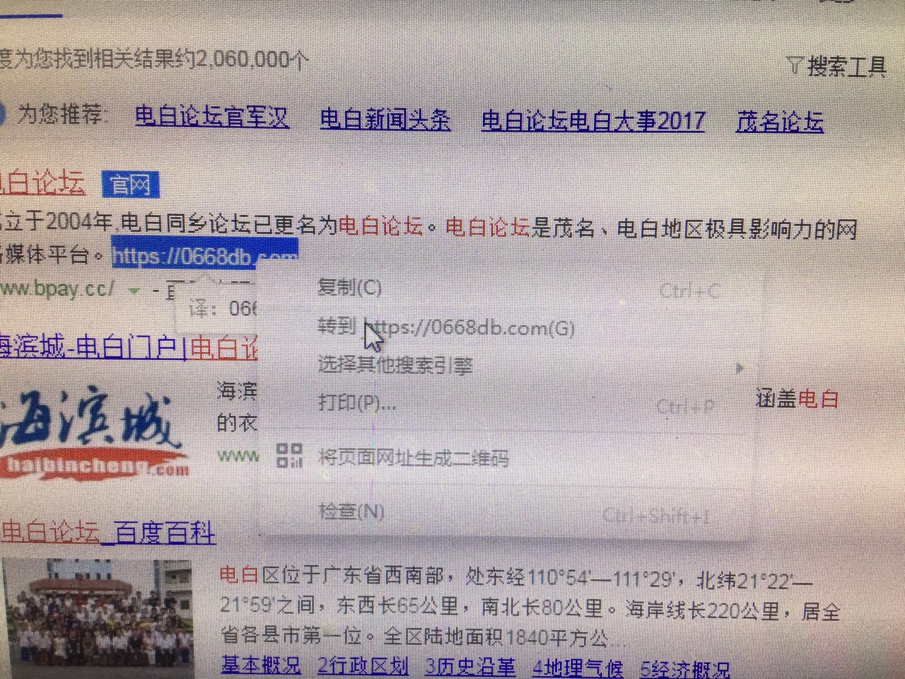 昨晚我在另外一台手机,和电脑上一直都打不开电白论坛,包括百度上来的网址都打不开。 同时非常奇怪,百度上能搜到的电白论坛的信息已经非常少了,首页好像才两条。 怎么回事呢? 我今天想到了: https开头才行。 必须在http的后面加s。 我这样试一下就行了。 以前好像没有这么复杂。