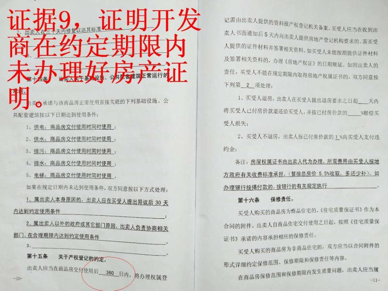 四、关于开发商在购房合同规定期限内未按时办理房产证及拖欠大额办证费问题