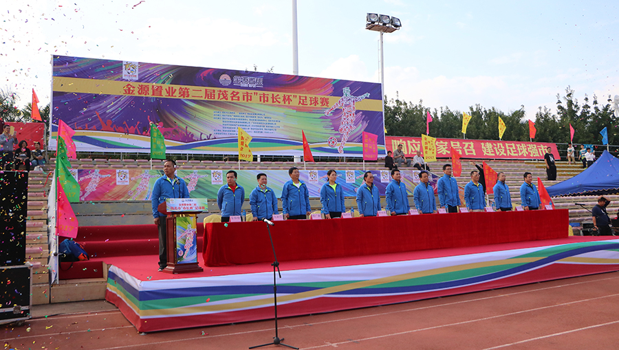11月29日下午,金源置业2017年第二届“市长杯”足球赛总决赛在茂名市体育中心开幕。本次赛事由茂名市政府主办,茂名市文广新局、茂名市教育局、茂名市广播电视台联合承办,茂名金源置业有限公司总冠名。今年是第二届,目的是发掘和培养我市更多的青少年足球人才,全面推动我市足球的蓬勃发展。