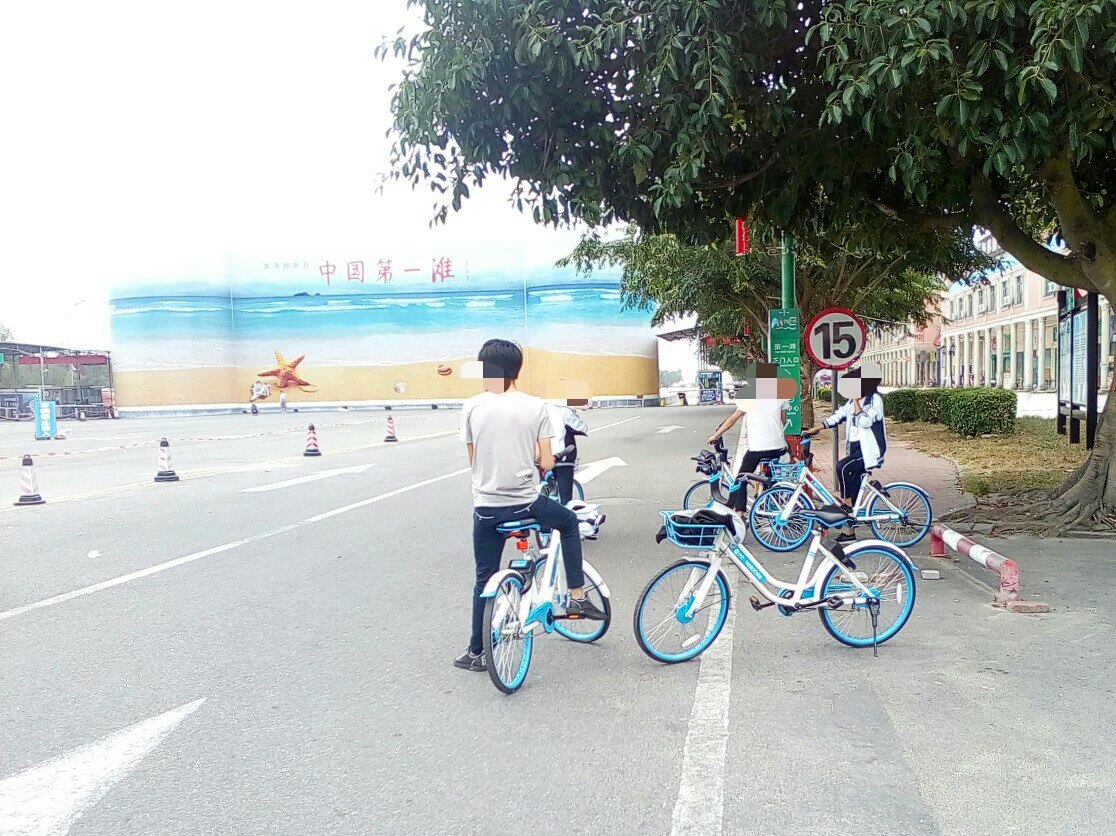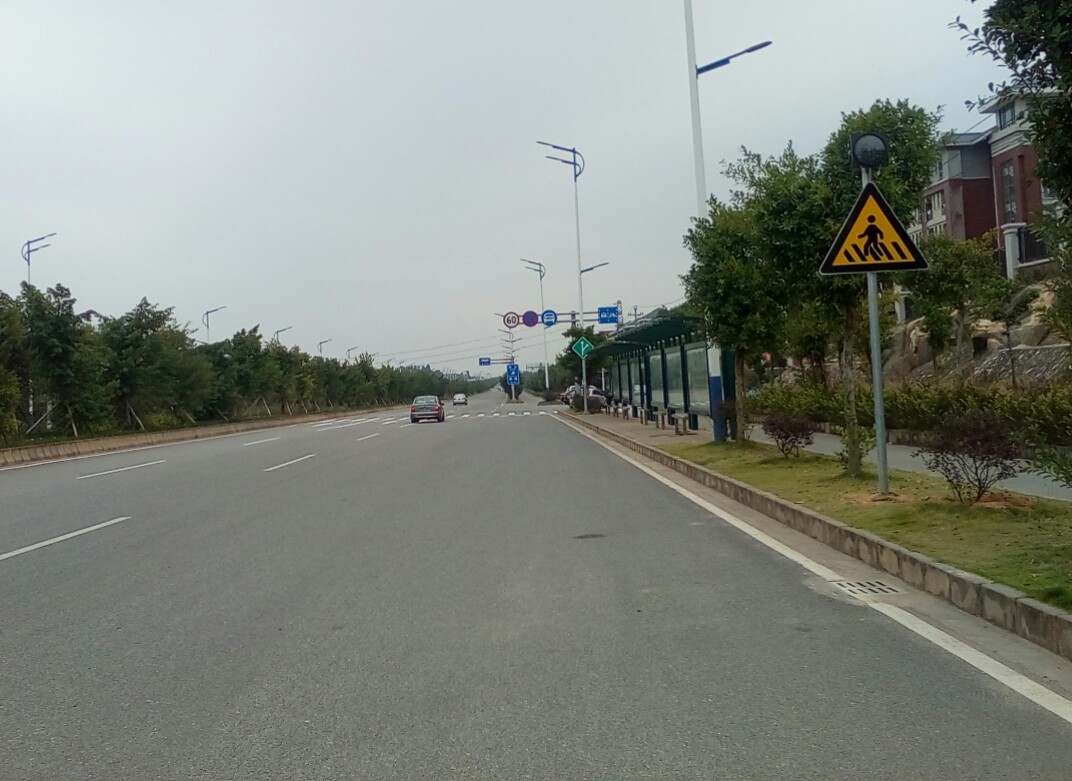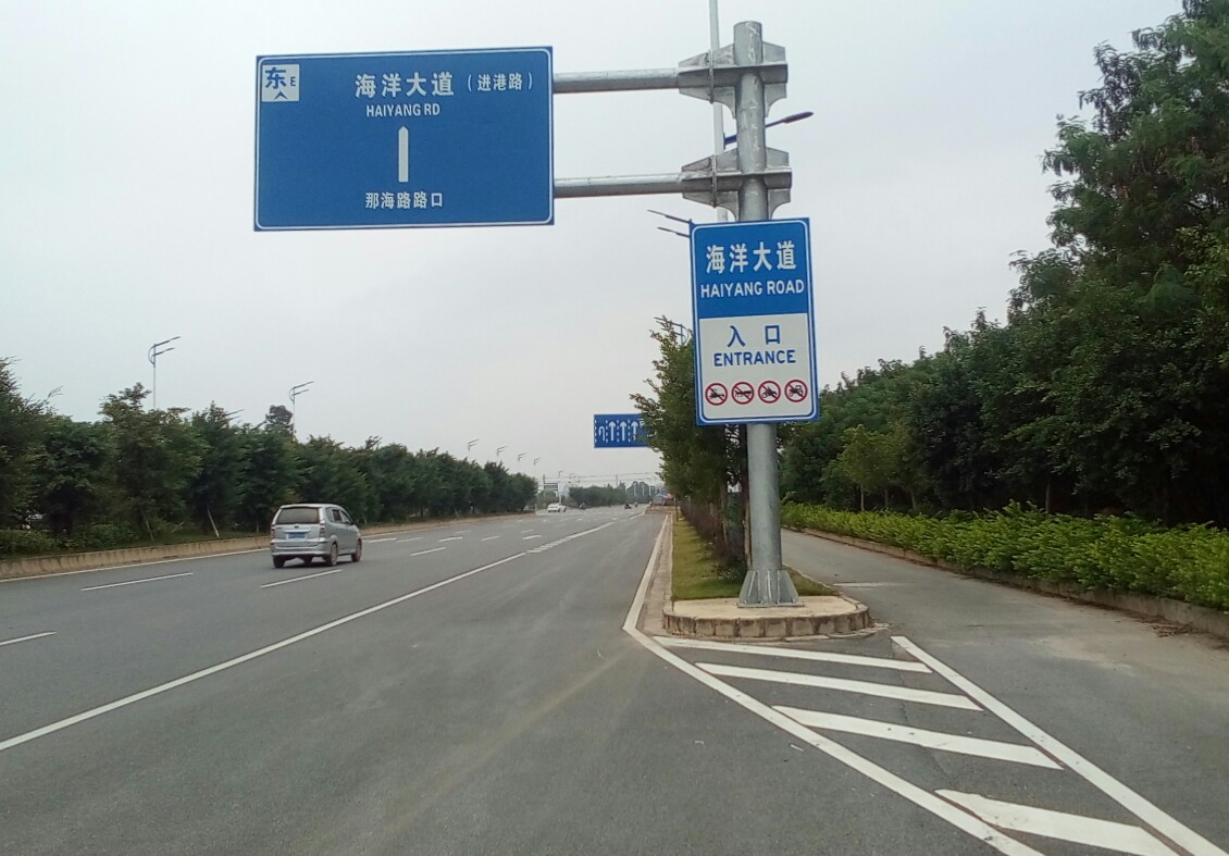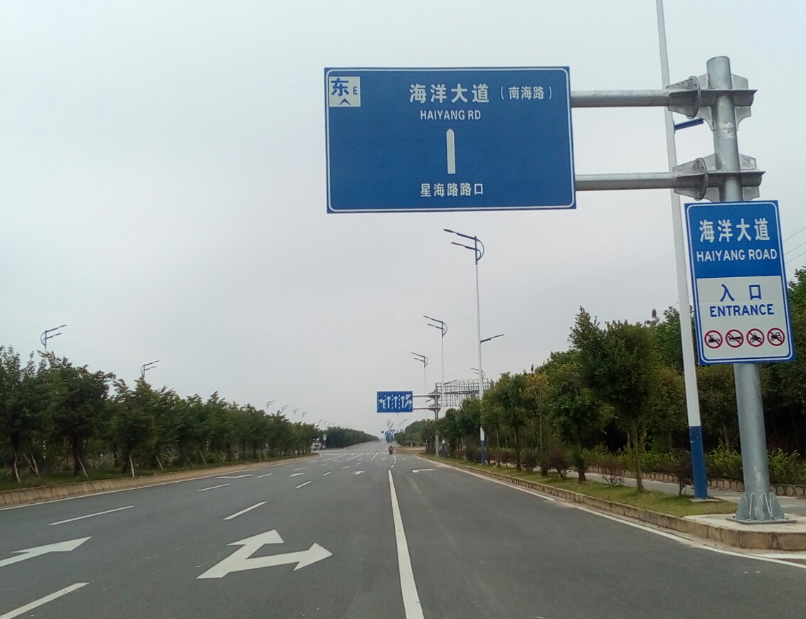 在桥上看到宴镜岭貌似好近哎~过桥后貌似有几条路走,先向右边沿海走下~哎竞可走到歌美海公园旁出口貌似叫海洋大道接口?