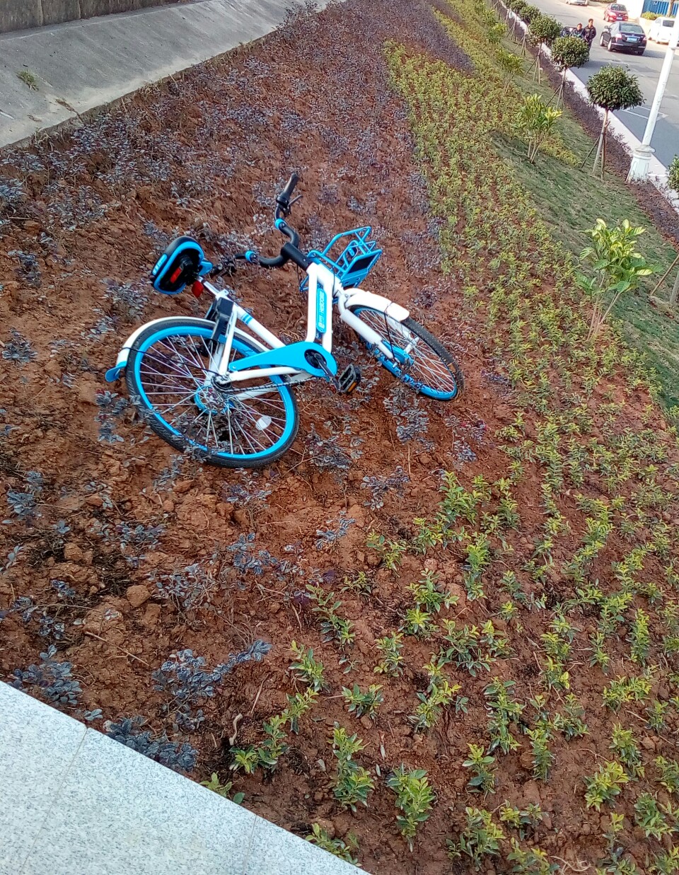 说到素质~看下图~不过还算好没丢向另一边海滩~或许这也只是极少极少个别现像(不幸给俺见到而己)~但压坏那些花草就不好了~还害俺踩了一脚泥巴才抬它上人行道~车身也粘了泥巴~哎噜还别说~这东东还挺重的哦?不过话又说回瓦在忠良街附近也见有应是派用三角电鸡回收集中(曾有拍到图但不知何因找不到此图片)