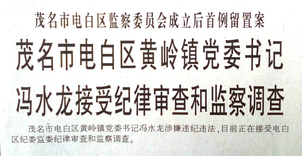 儒 儒风化雨 学前班 注册 2017-12-17 消息 92 反馈评分 6 点数 0 2018-03-01 #36 茂名市电白区黄岭 发表时间:2018-03-01 信息类型:反腐快报 这是该区监察委员会成立后首例留置案。(电白区纪委宣)