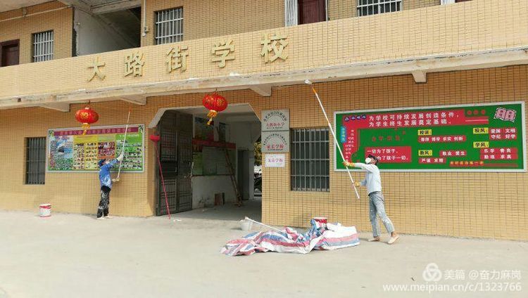 家长们主动参与校园环境整治行动。