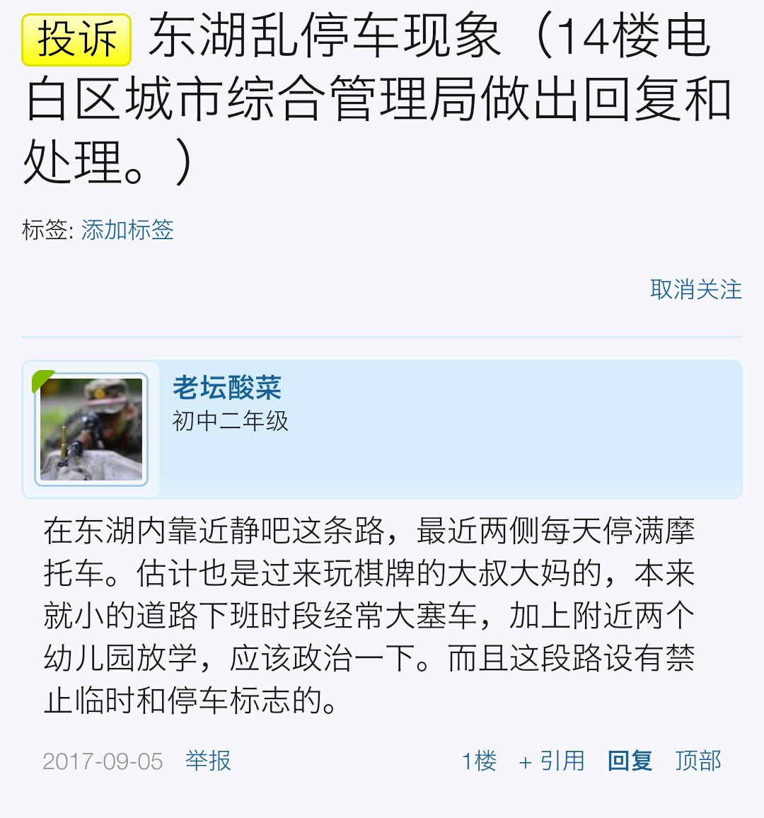 说到那个就来气,每天乱七八糟的赌鬼摩托车乱停乱放,幼儿园放学时搞的水泄不通。