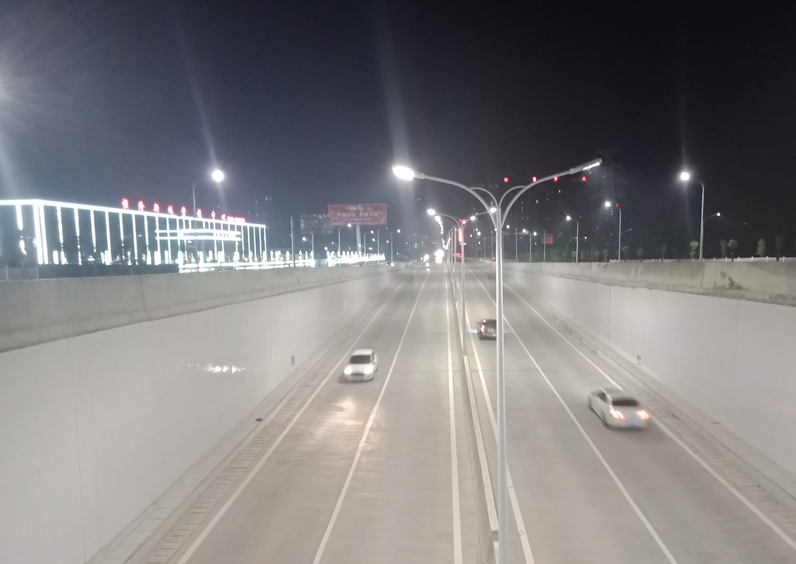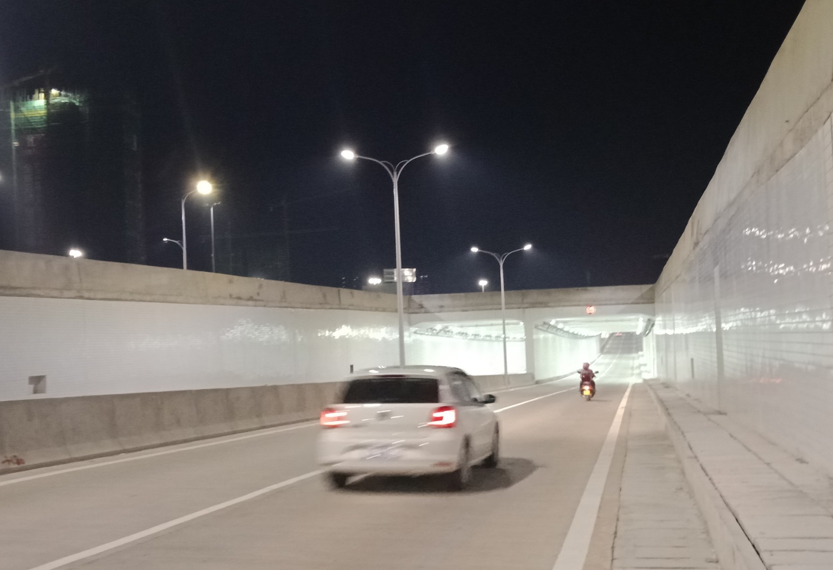 日间与傍晚诂计车流量等会较多等~?所以特意较晚点去吸吸:biggrin:,貌似还是有好些车流穿行,不过这车流量现像嘛,或许不是噜瓦说了算,或许在路上安装的流量摄像头或够权威点吧?不多说吸吸下沉隨道的亮灯境况,因有车来车往,所以不敢也不能在隨道停留,只能走马观花,随摩随意拍下~下沉隨道外面特里面两边的灯光个人觉得还算挺清晰光亮~