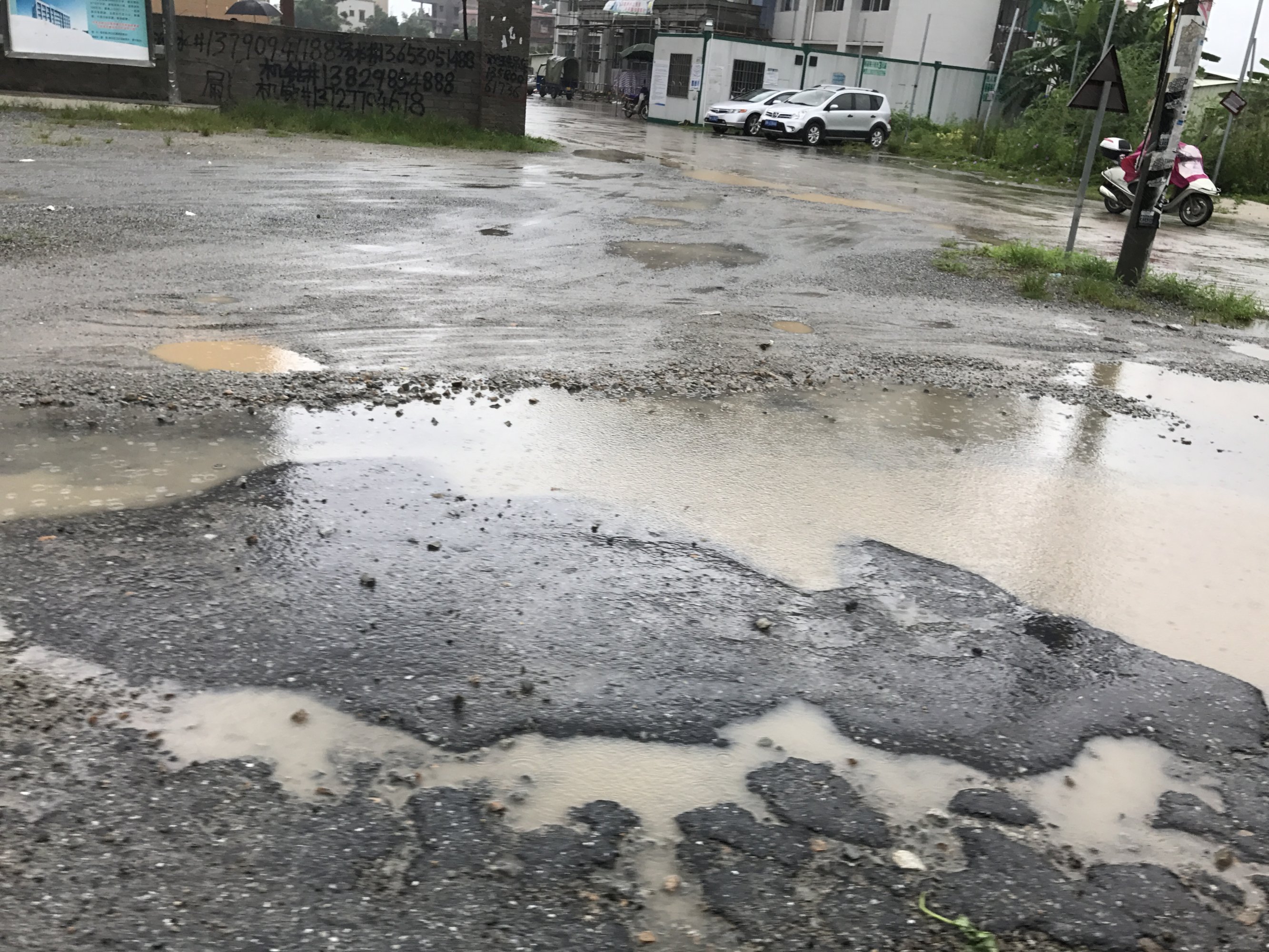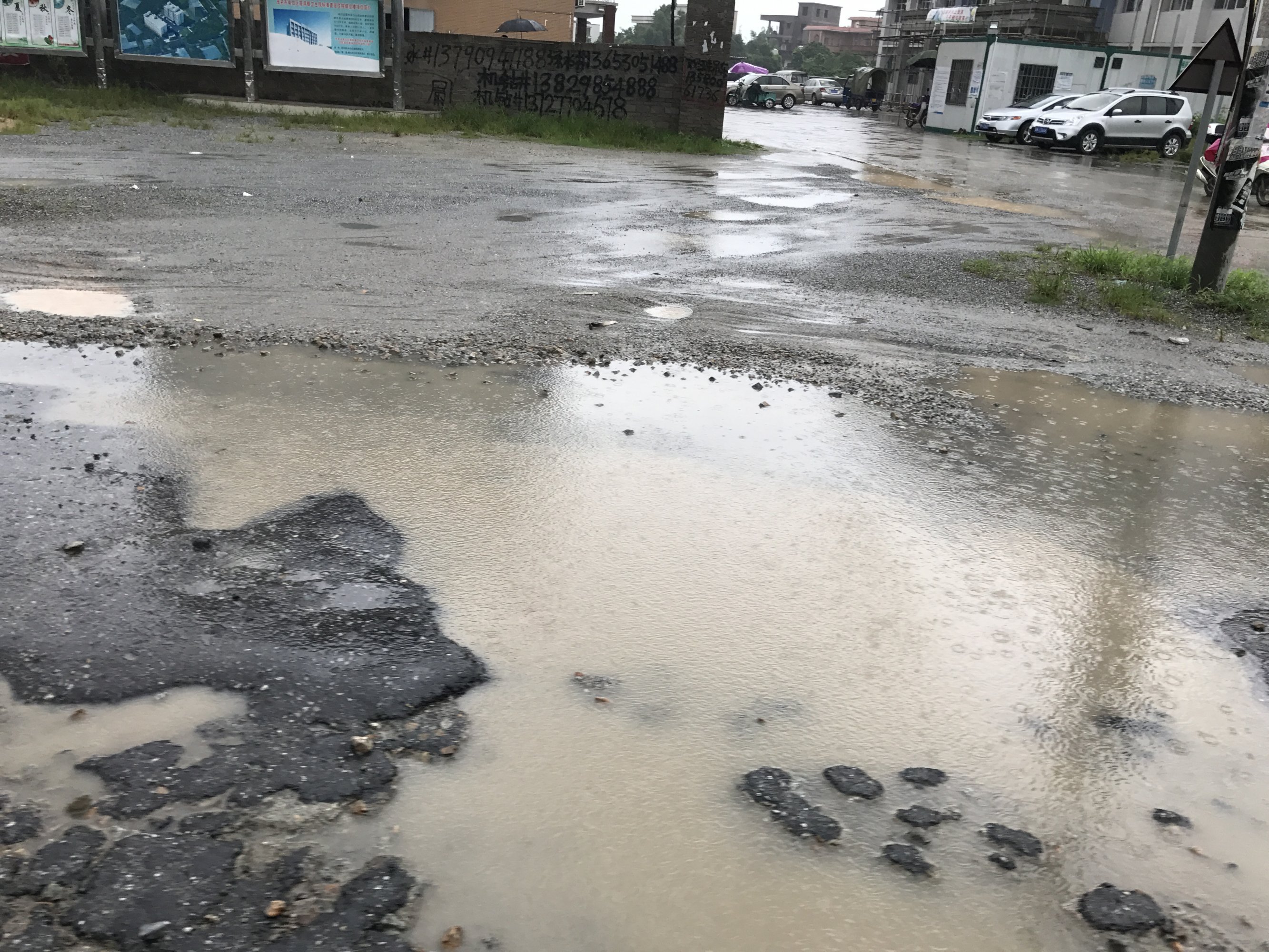 这条主干道是进入霞洞的门面,第一印象。无论从林头方向进霞洞还是从羊角方向进来霞洞,一直到镇中心都是坑坑洼洼,无数个坑,已经严重到根本无法行车!老百姓叫苦连天!司机为避免掉坑都要绕到对面方向逆行,真的非常危险!