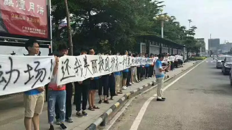 电白一中全体老师,汇集在区政府门口,拉起了横幅: