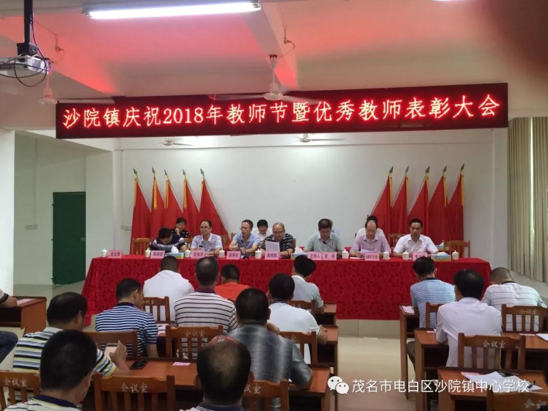会议由镇委副书记、镇长梁禄同志主持。镇委书记黄明辉同志,镇人大主席谢英柱同志,镇委副书记徐行乐同志,镇委副书记莫伟凌同志,镇委委员、副镇长毛学宽同志,镇党委委员陈晓雄、李兴强等镇领导出席会议并为受表彰的优秀教师颁奖。镇领导班子成员以及沙院镇2018年优秀教师,中小学校长等120多人参加了本次会议。