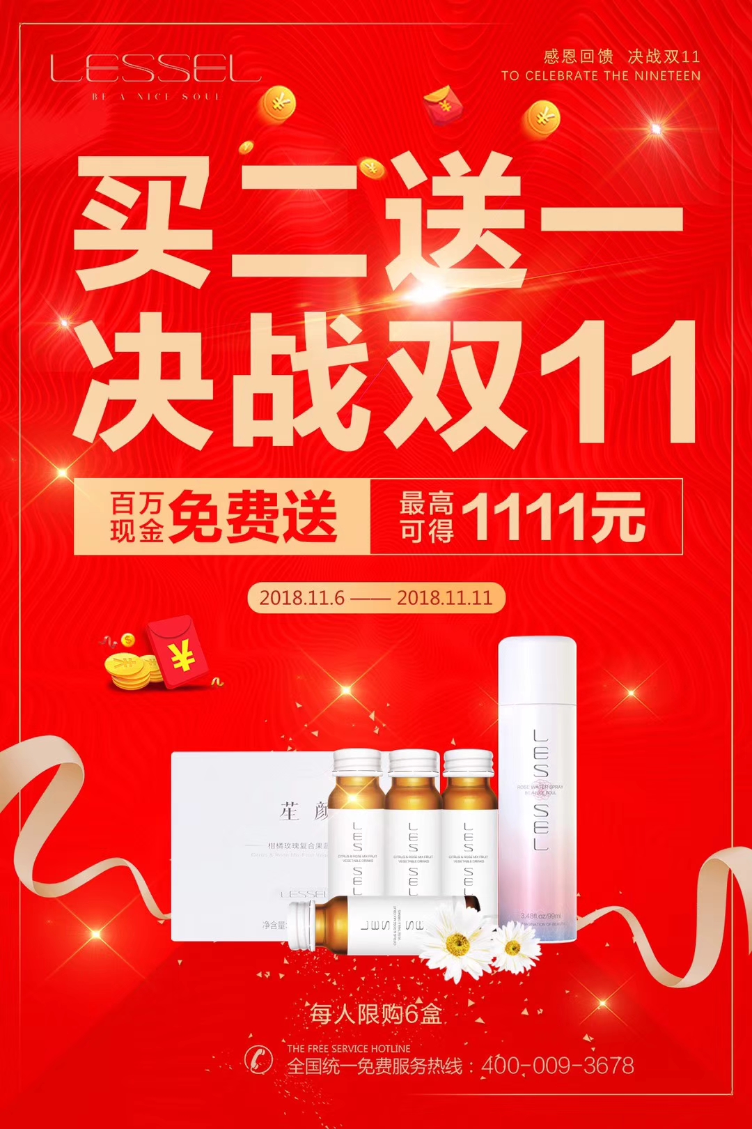 小 小牧云 幼儿园 注册 2018-11-08 消息 1 反馈评分 0 点数 0 2018-11-08 #1 LESSEL 莱斯欧 双十一正式开始,不用等到11号 全场买二送一 酵素、花水喷雾 全国统一免费服务热线:400-009-3678 附件 3.jpg 801.3 KB · 查看: 302