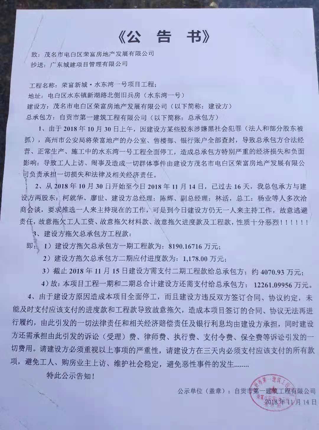 爆料 电白房地产,电白【水东湾一号】所有老板涉黑,全部被抓,资金冻结。最重要的是…… (6人在浏览)