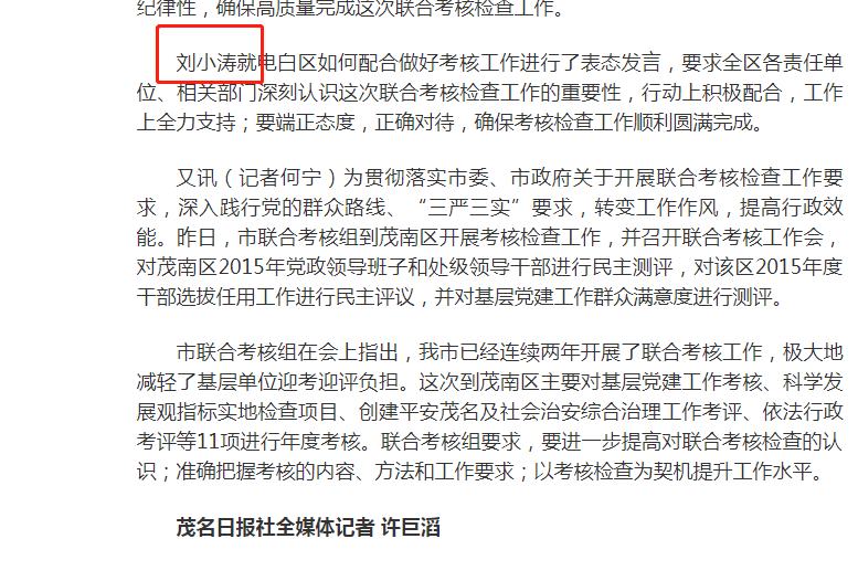 很明显,茂名网的领导是非常想念刘小涛同志的,又或者是根本记不住陈小峰同志。
