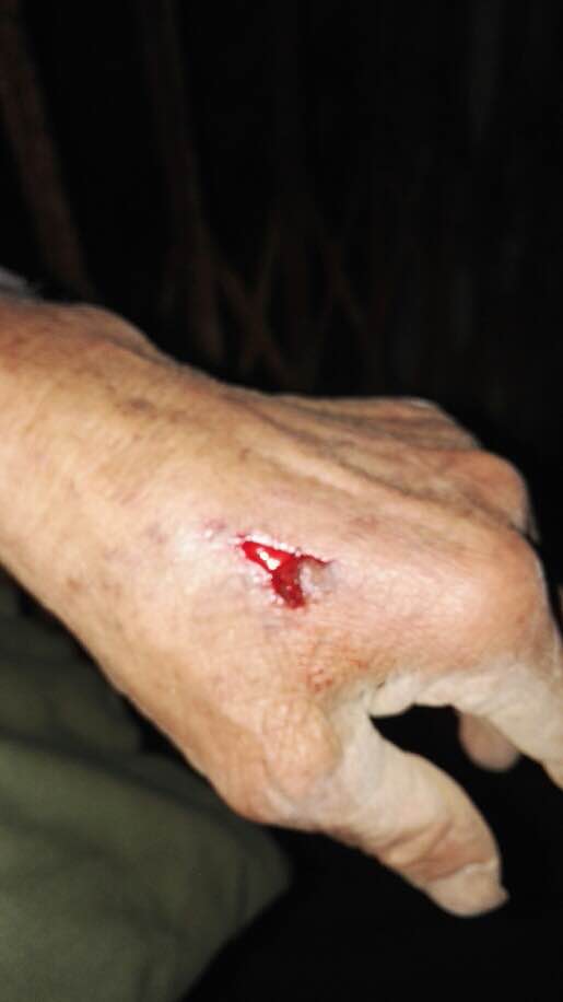 最近,对方把小房子租给卖红心橙的人,林忠期上前与之论理,又被狠揍一顿。年近九十岁的老人了,被打得青一块紫一块,满手是血。