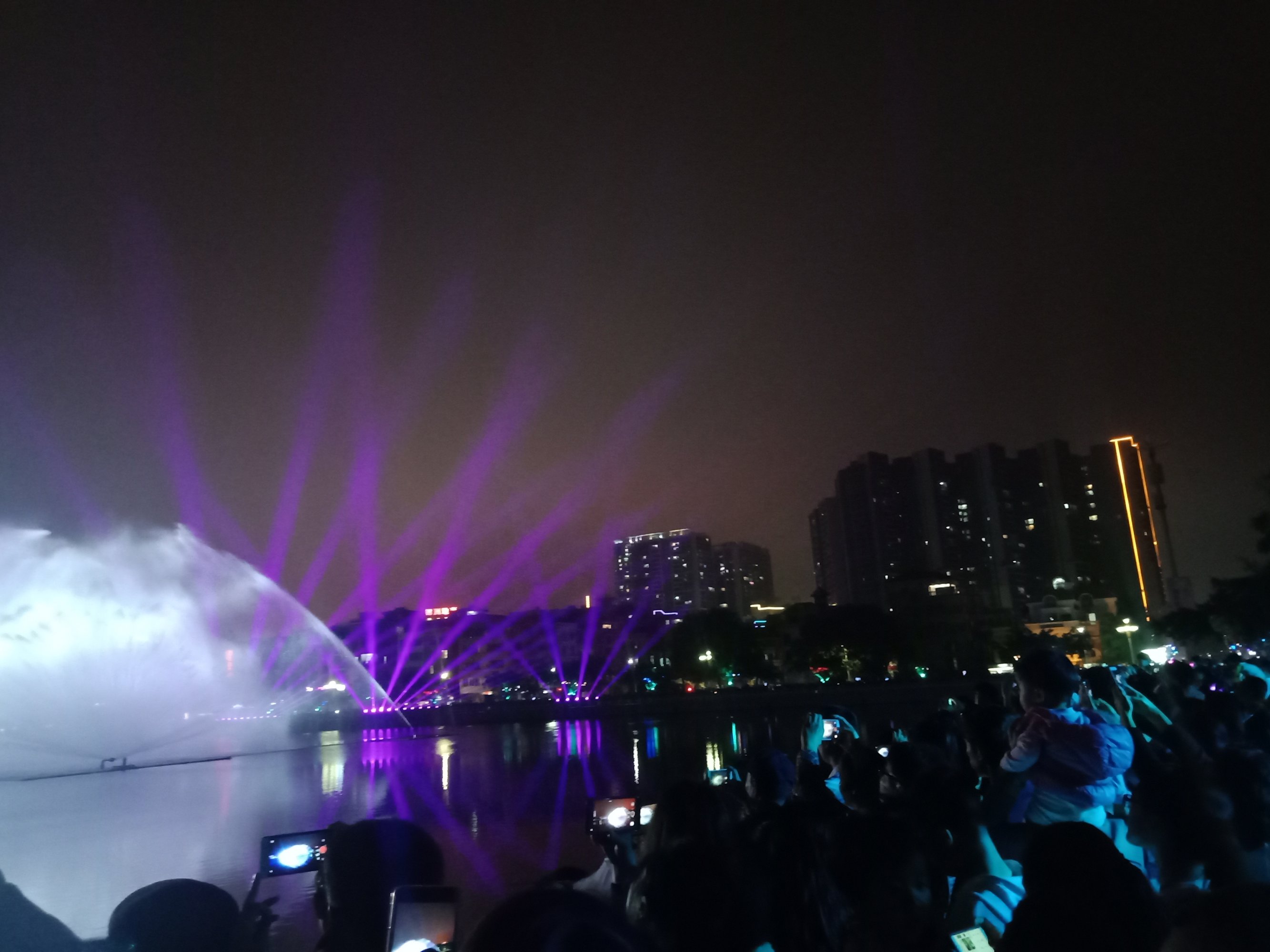 瓦也说对人景有兴趣,所以也没多拍那水幕灯光秀,所以特驾摩走去栈道那边,想看下人景,发现人也有那么多~