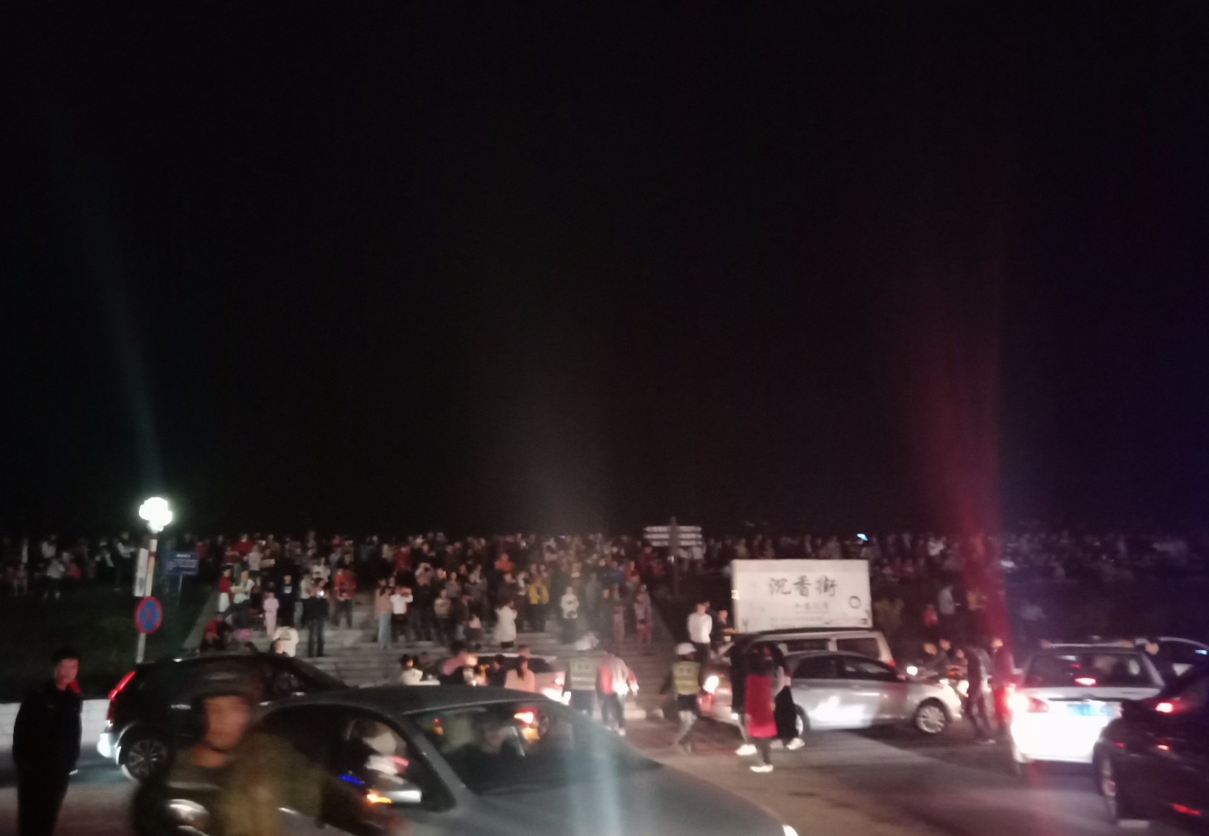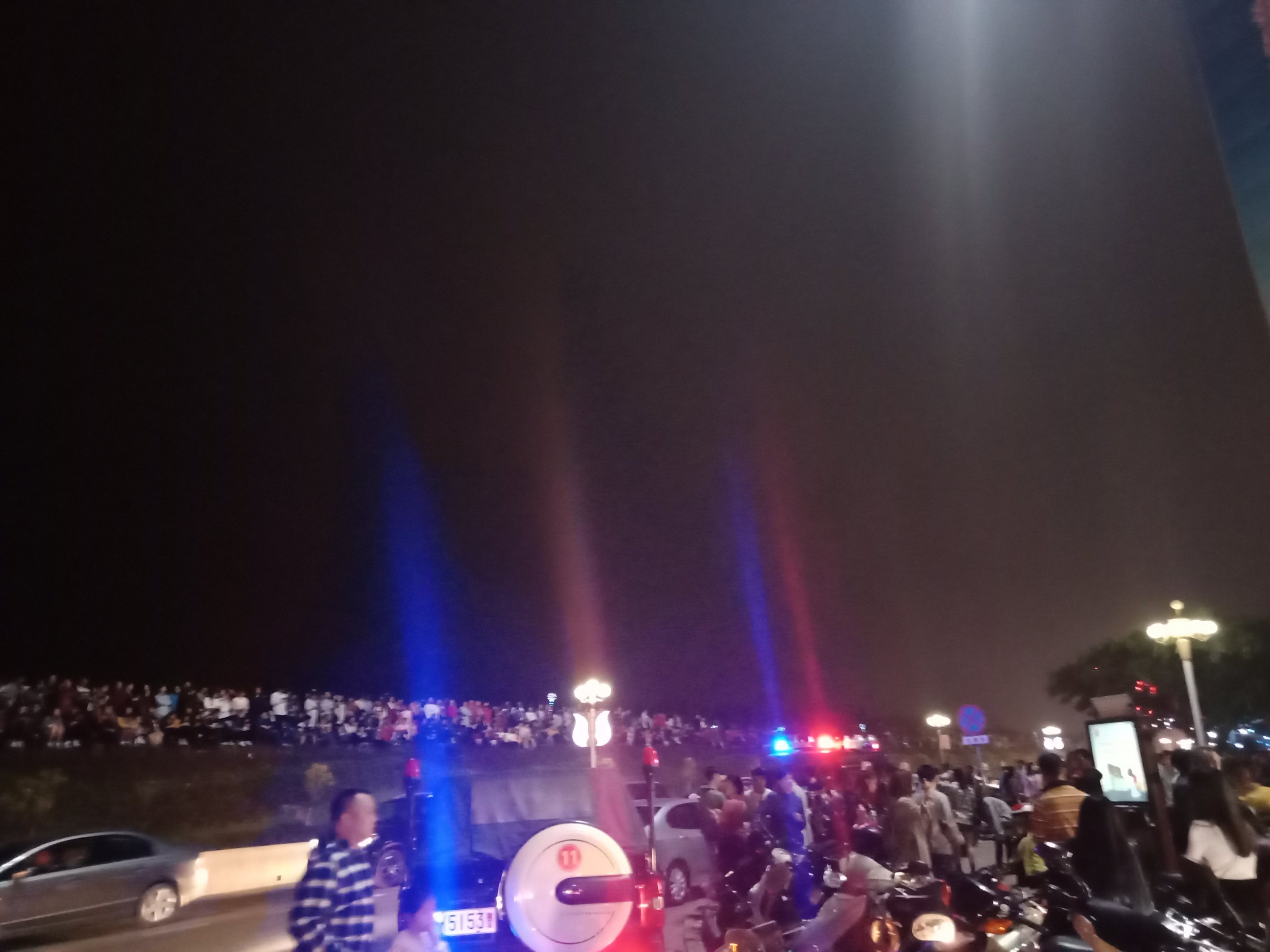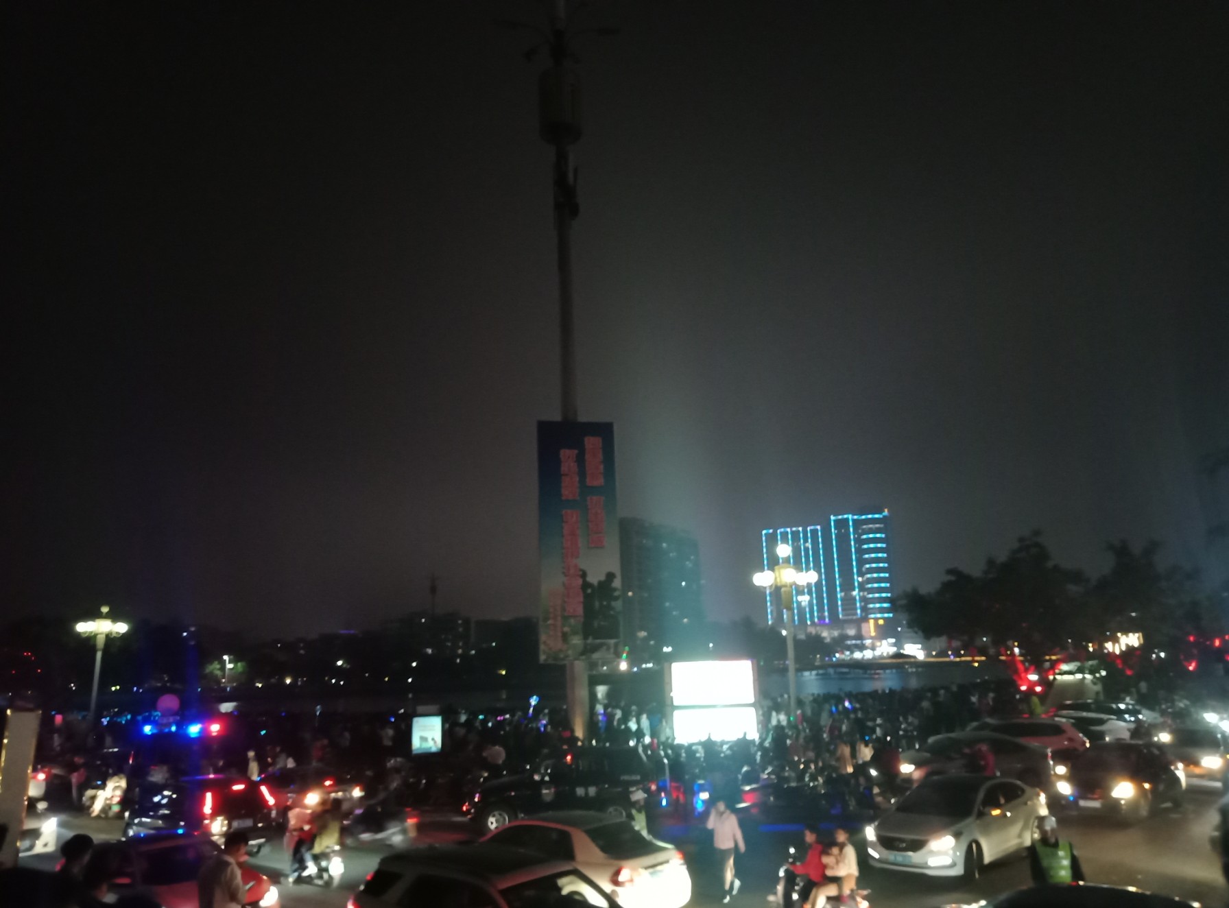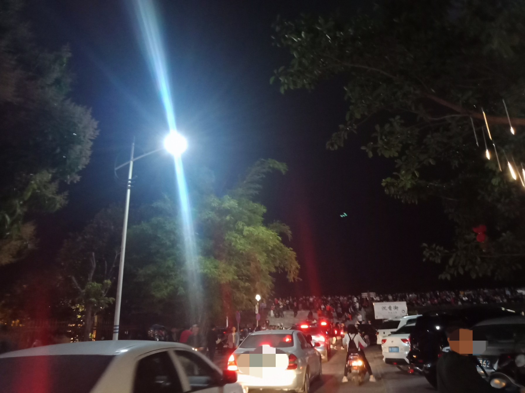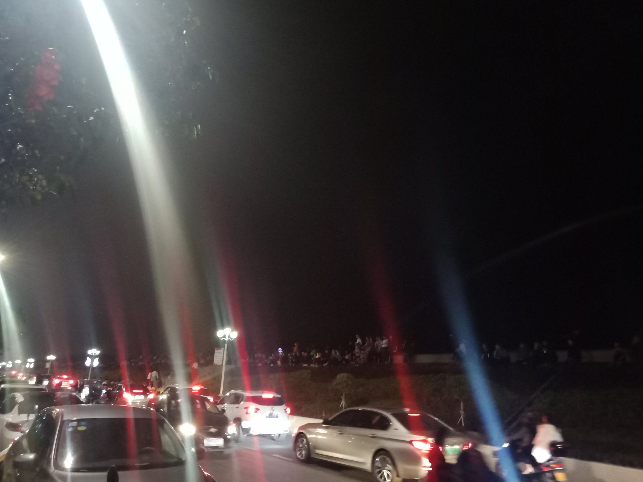 吃完晚饭,休息下,等到将近8点零钟,又驾摩走金海那边去东湖吸吸~又是车多人多~整个东湖广场路肩等人来人往,婆市车大炮,有路边监控视频看到这些景像的~