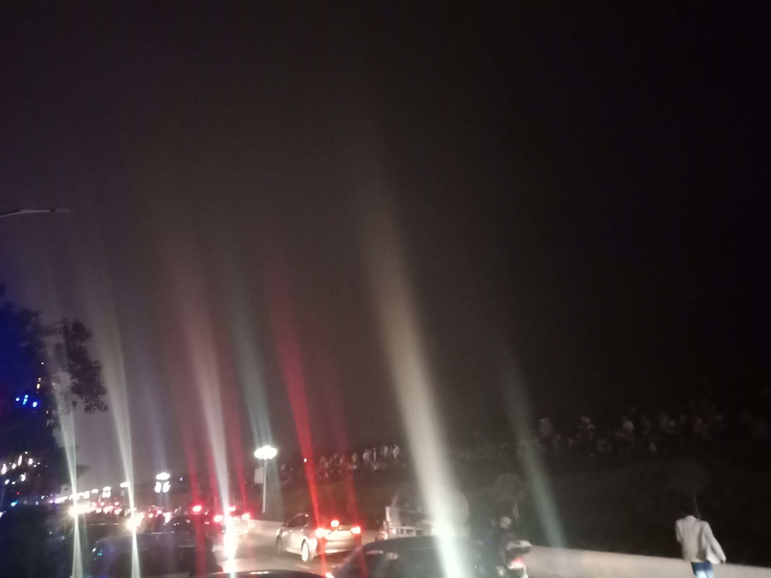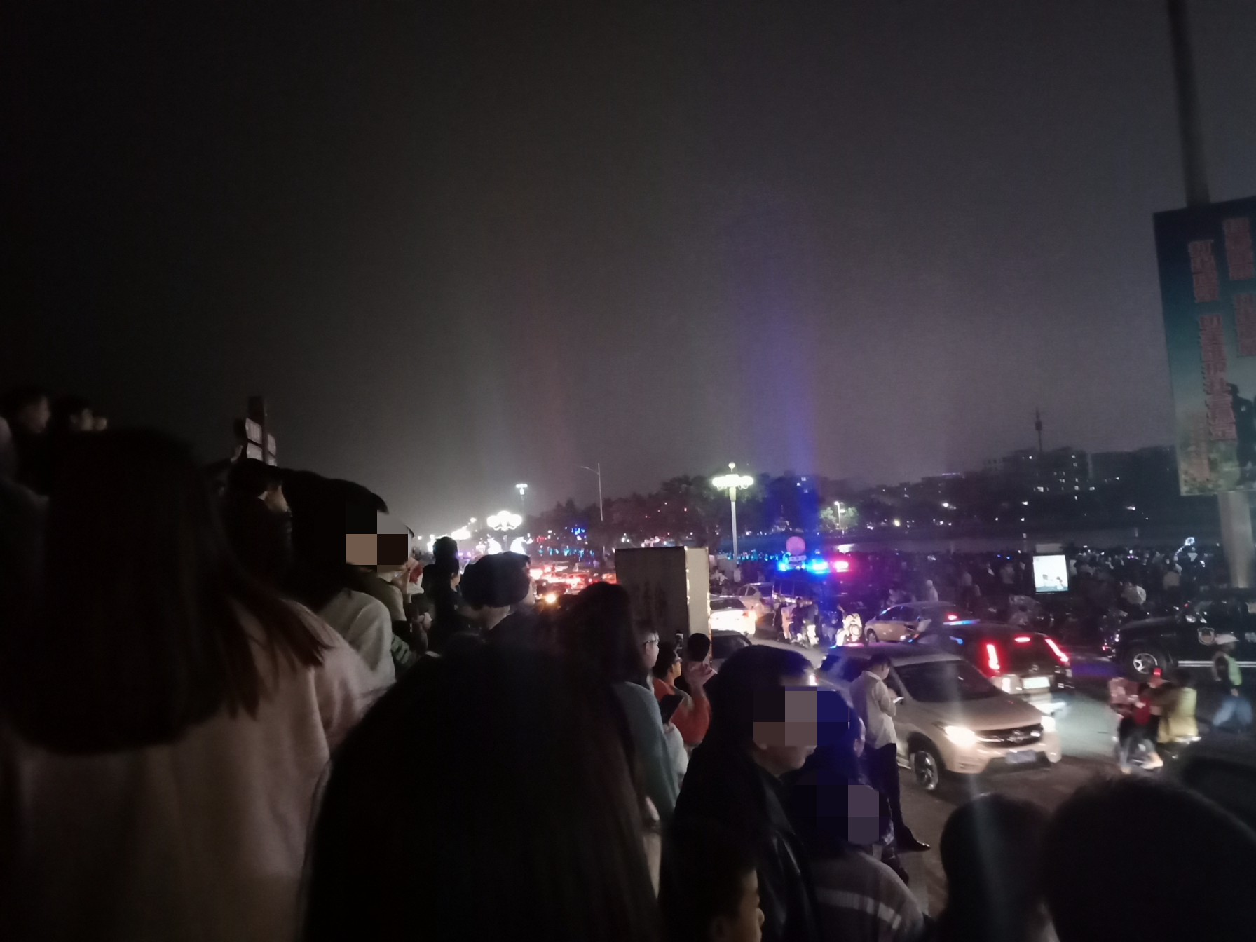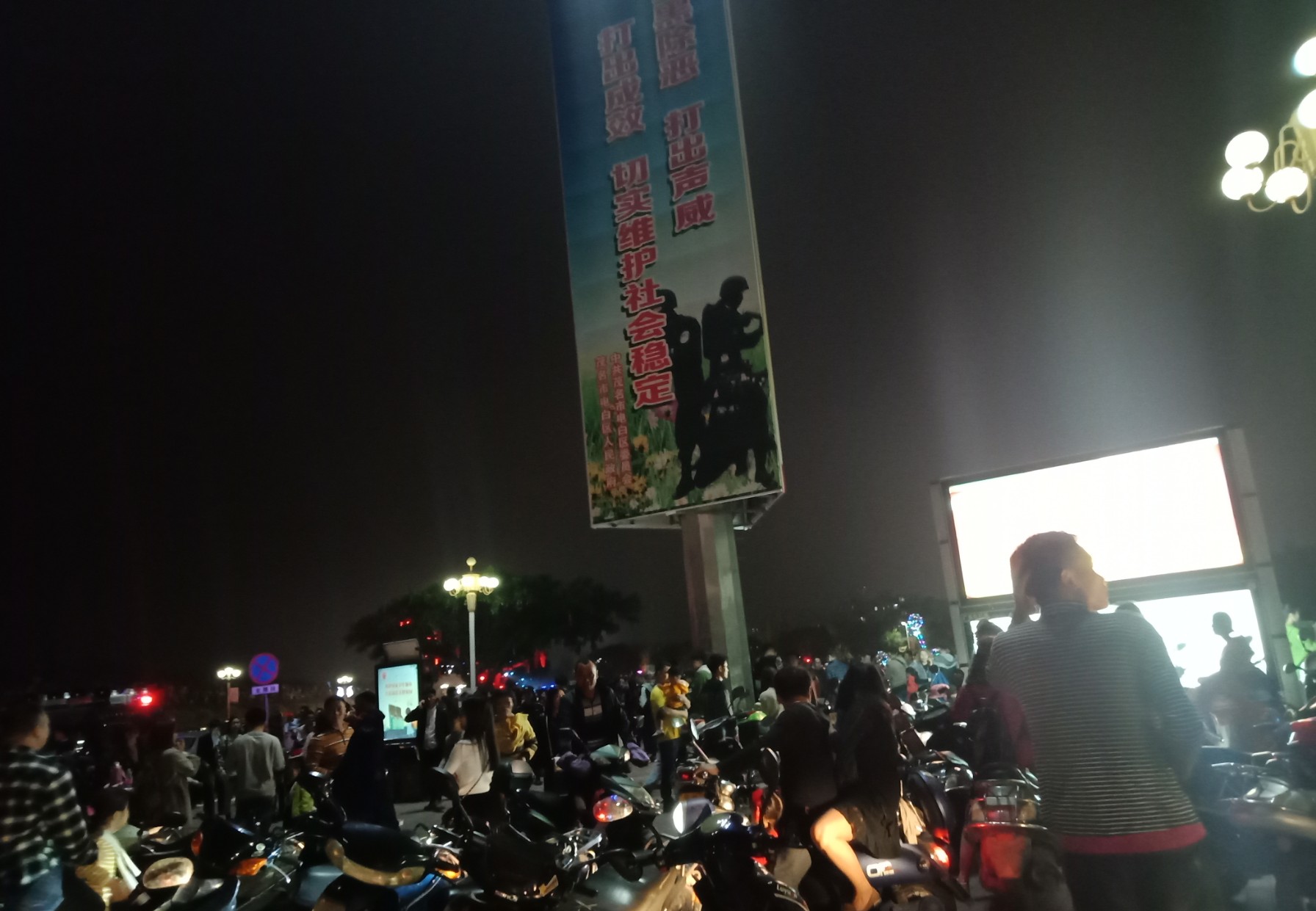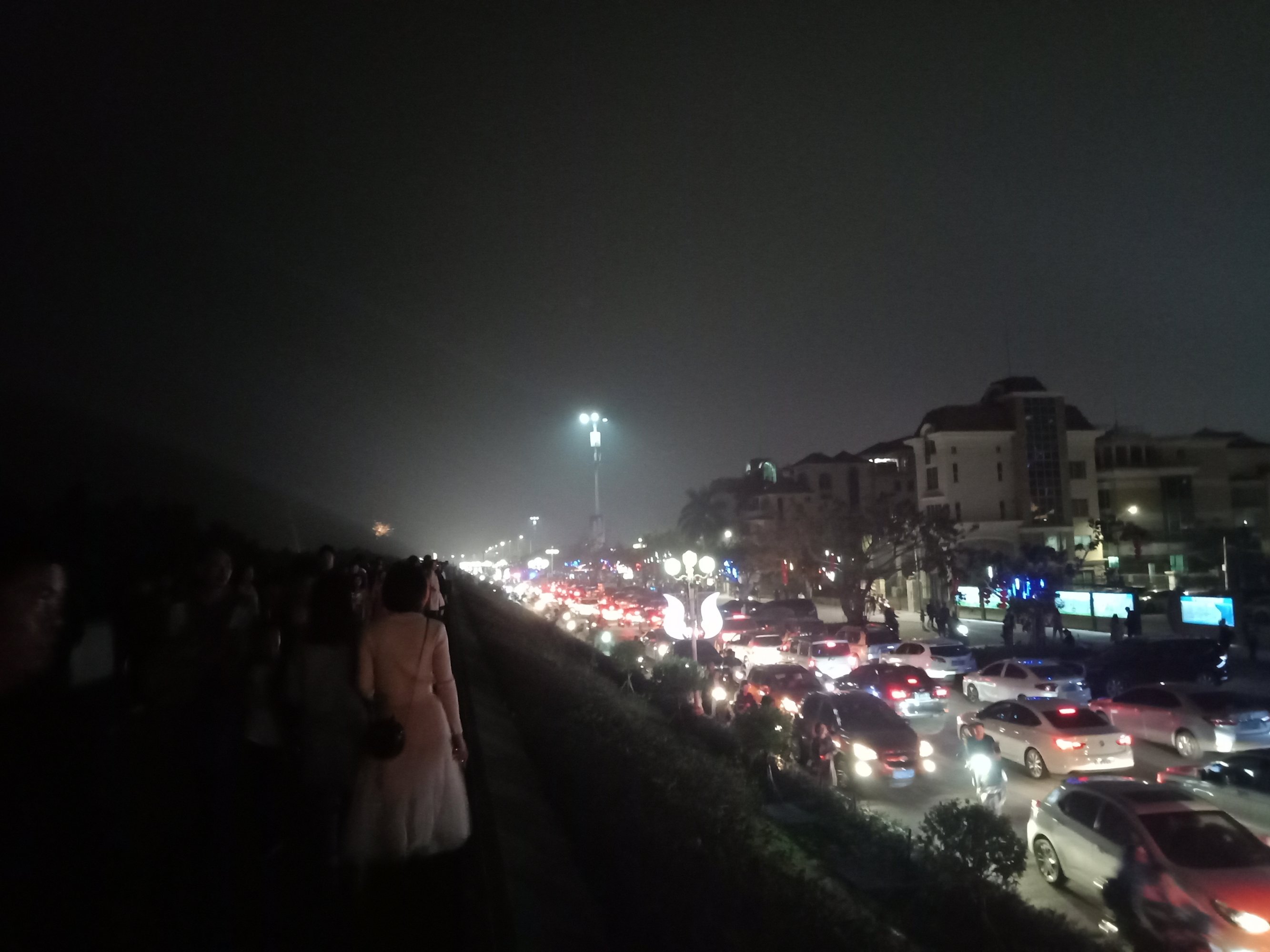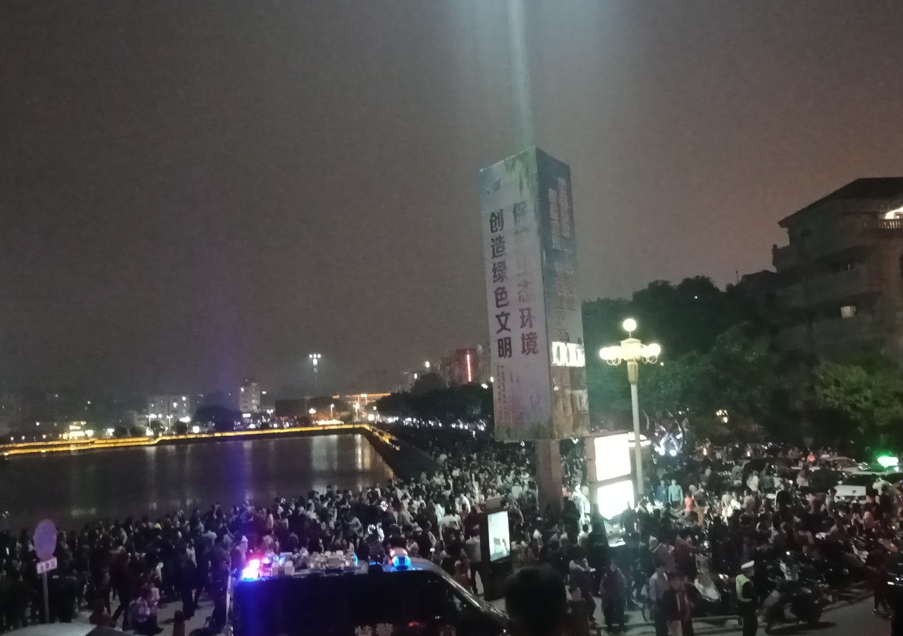 吃完晚饭,休息下,等到将近8点零钟,又驾摩走金海那边去东湖吸吸~又是车多人多~整个东湖广场路肩等人来人往,婆市车大炮,有路边监控视频看到这些景像的~
