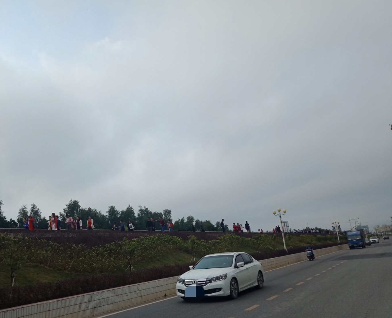 于乎驾摩过下东湖那边,见有成七八辆大巴停靠那边,而绿道上有好多尊爱的游人在步行,有些向观鹭阁这边徒行拍照,也有些向沉香公园那边走~
