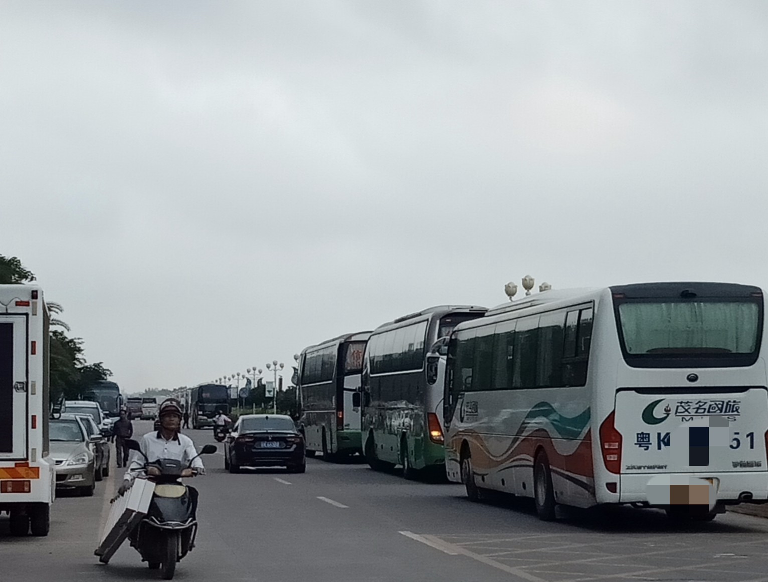 今天早上我在一小运动场晨练时,也见到好几辆信宜包车