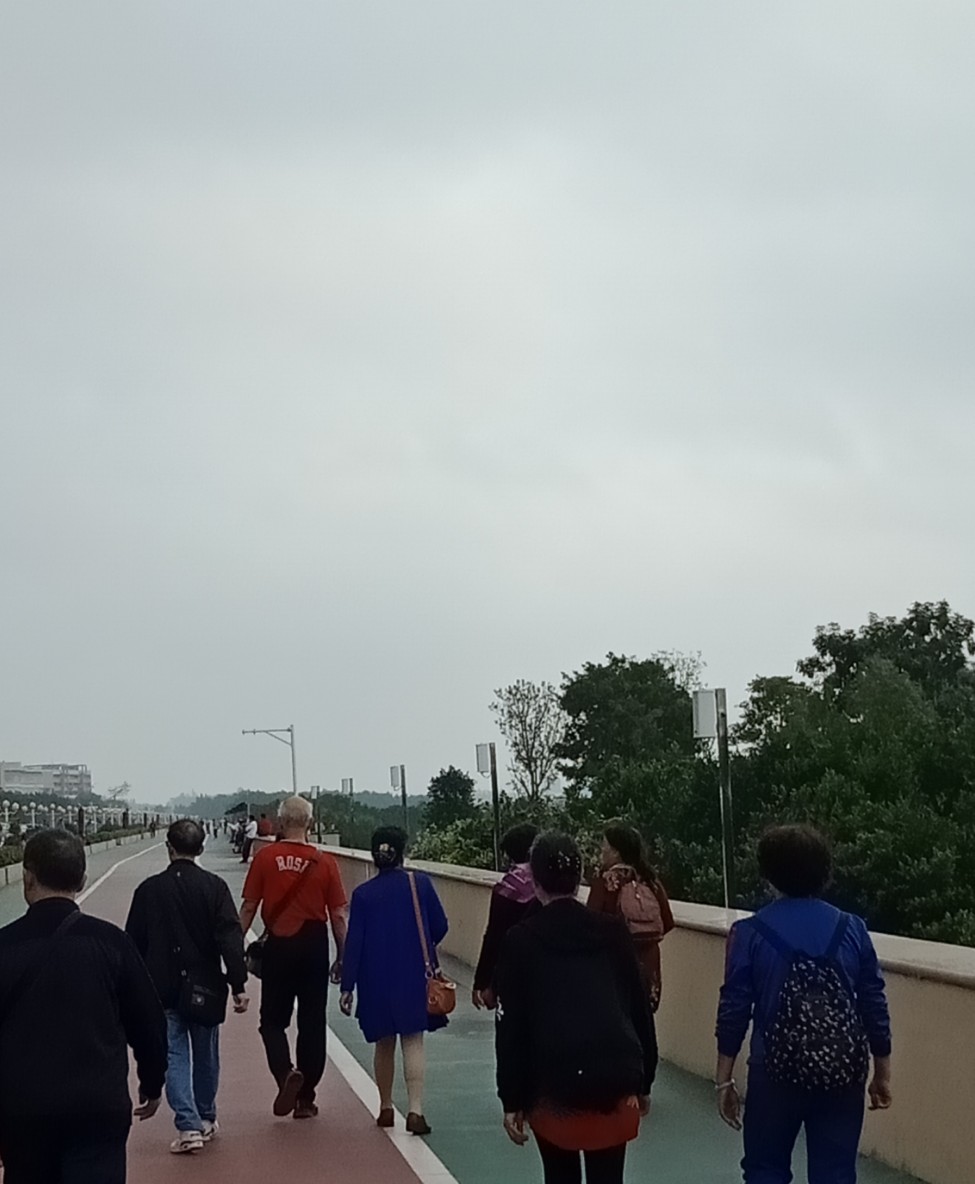 真的不骗你,瓦有简单算下有成十辆不同团队导游旅游社等的,见他们拿着旗,还有些来早点的,逛完集合完毕上游巴走了~为何不去绿道跑走一圈,有好多些些,人男女老少晨运晨跑徒走,风雨冷空气不阻,而傍晚吃完晚饭出来过来徒步休息的就不用说了:tongue:瓦有跟过他们随尾背后拍照留影~