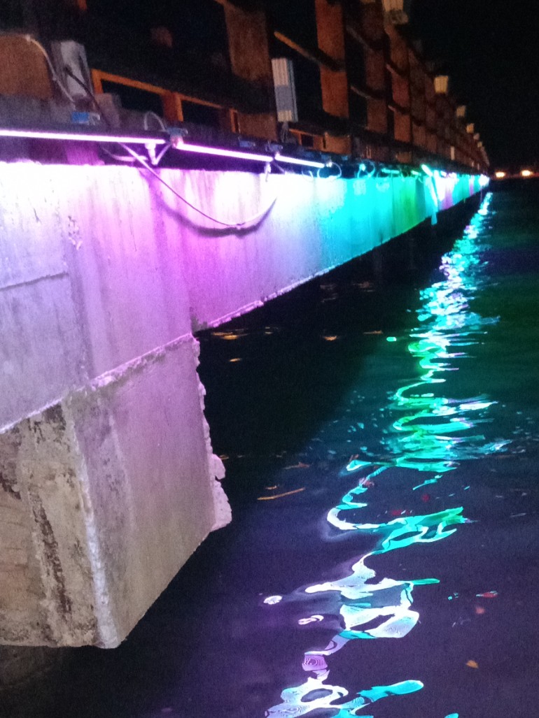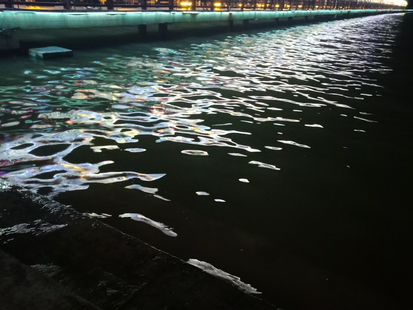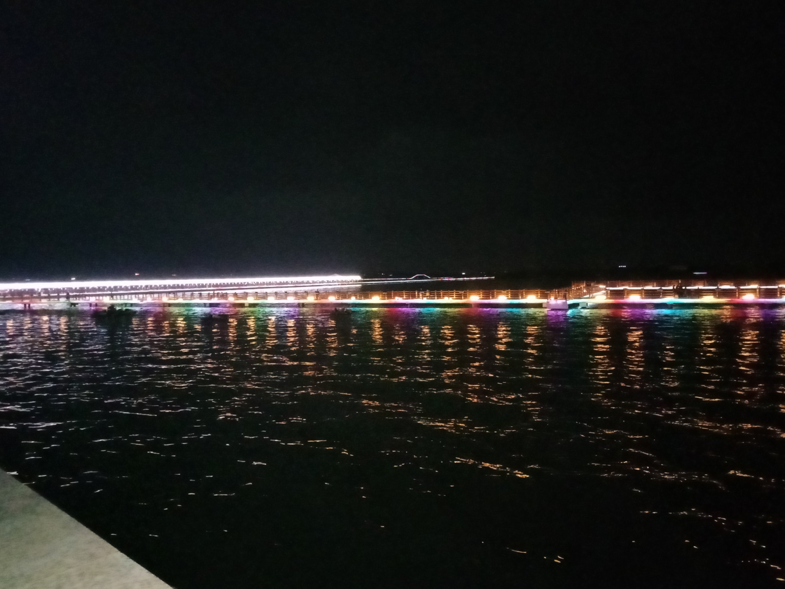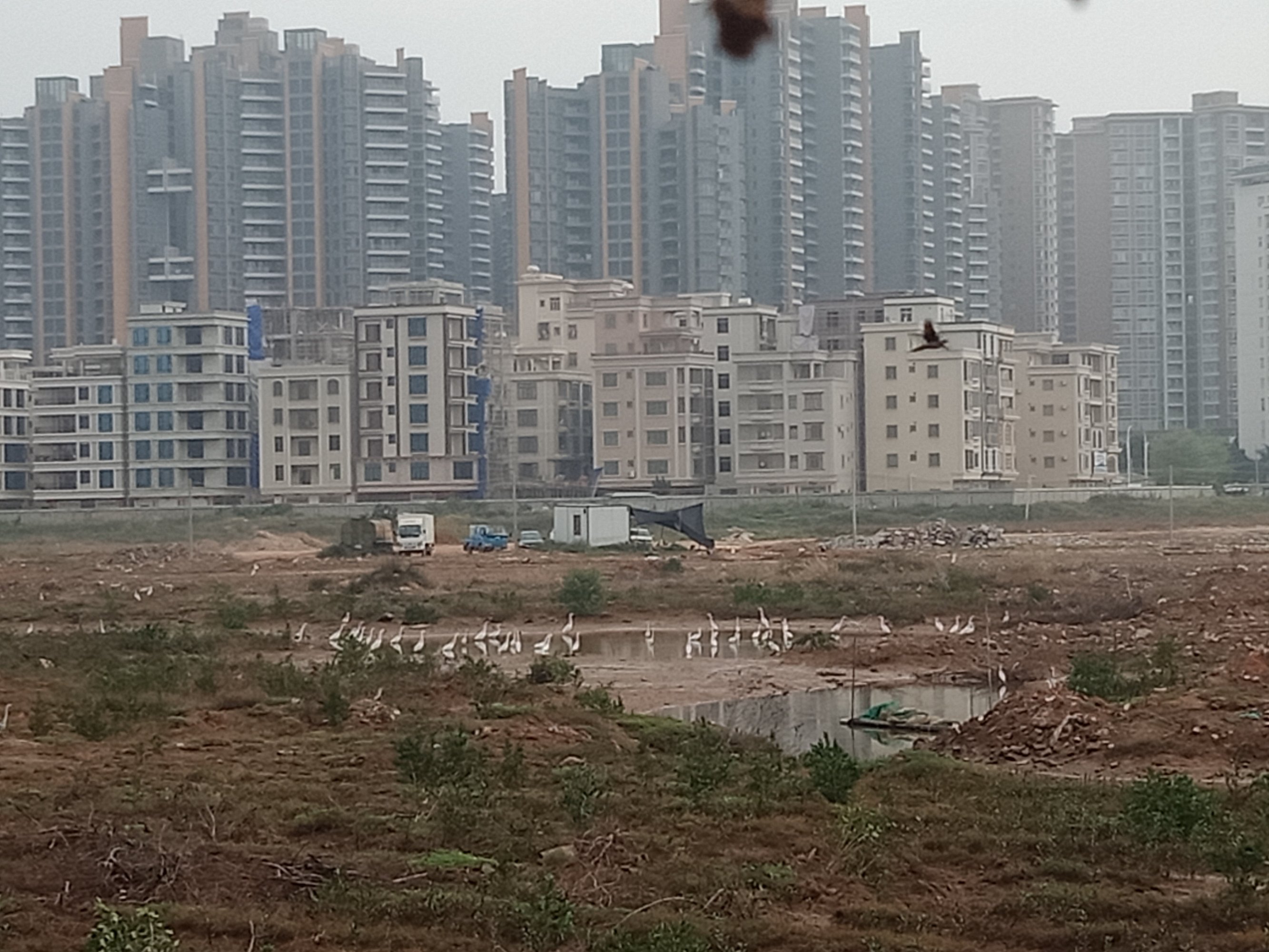 看图为何他她们在两边看什么,因为两边海面上有好多鱼儿在水面寻吃嬉戏等,一大片挺吸引人,而那边水面上又有自制鱼排船在停靠清洁等,而远处有零星白鹭在水面飞翔寻食~发现有好多白鹭者飞去对面工地的浅水面上?