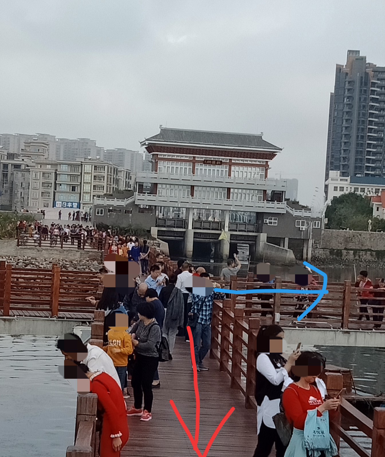 放好摩托,而在东湖那边停车下来的大部队在绿道向观鸳阁这边来的尊爱游人也续渐向这边行过来,而那观鹭阁下的洗手间也开始排长龙了~