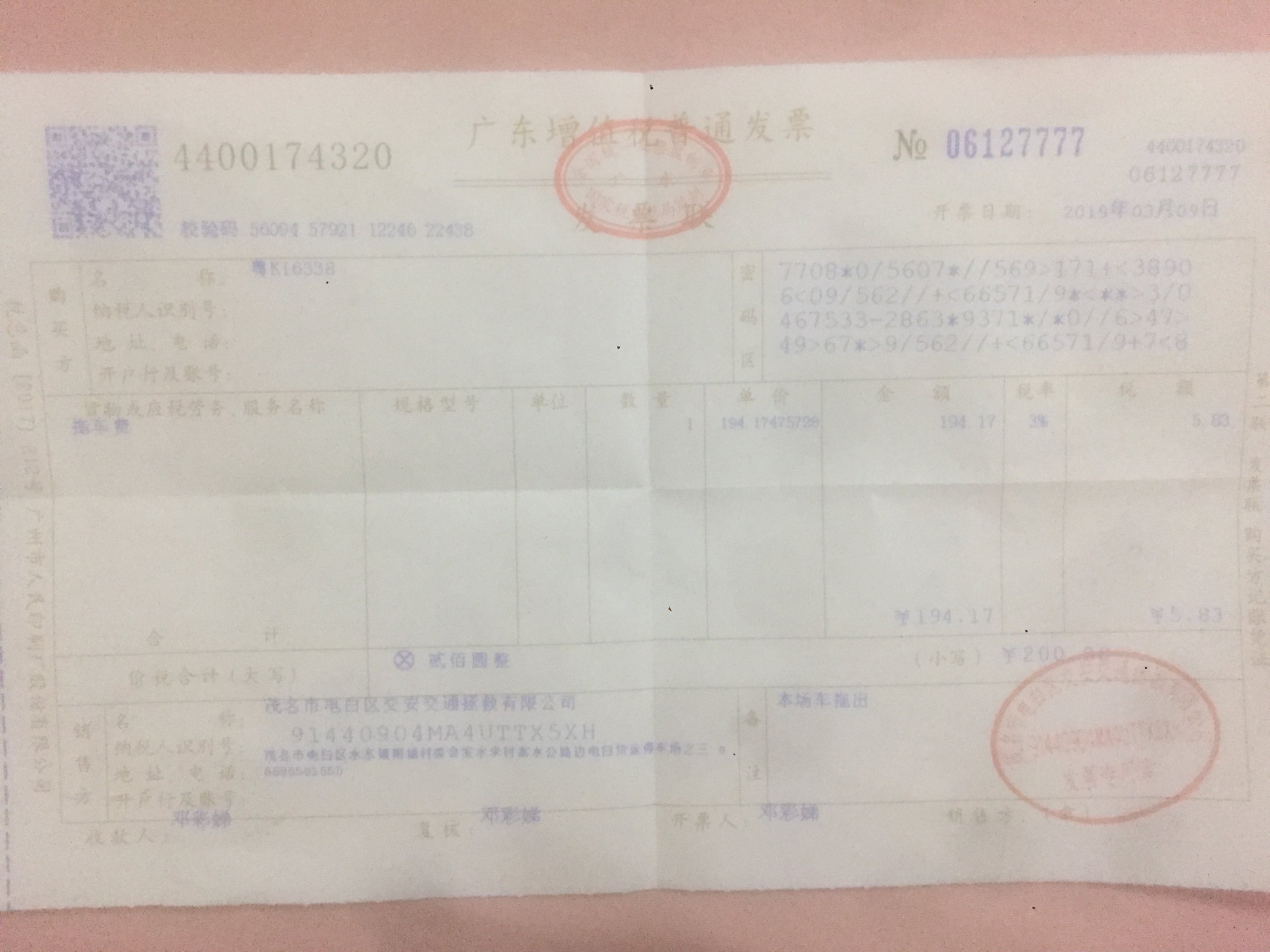 本人上个月份,也就是过年期间在电白附近的325国道出了点交通事故。打了交警电话,在等待一个小时左右交警还没来电白区某交通拯救公司的拖车就来了。他们一来到就说“拖车”,说需要他们的人帮我把车开到交警指定停车场,而这些交警在一边也是听到,也并没有做什么说明。可见他们和交警是有一定熟悉程度以及关联的。后来在交警部门办理好相关手续后拿着“放行条”去他们那取车之时,这就开始陷入他们给广大群众布好的陷阱当中。因为取车时还要收取至少200元“开车费”➕“10元”一张的“天价”复印证件费用!!!!!本人当场问这是收的是什么钱,有无发票?黑心拖车店的车场老板和老板娘便开始了他们的日常表演。一时说拖车费,一时说保管费,一时说开车费,一时说入场费,反正你不给钱就强行扣你的车,车子不能放行。从保管厂里头不到50米的门口路程我的车子被强行收取了200元开车费!可见这家黑店多么恶心。 小弟在此这提醒各位,下次从交管部门拿着放行条去保管车厂取车子是记住那些拖车黑店!不用给任何费用!若遇扣车,直接报警处理,绝不能助长这些非法行为的嚣张气焰。也恳请督查部门严查此类非法收缴群众血汗钱的行为!!!为电白的明天添一份正义与美好!