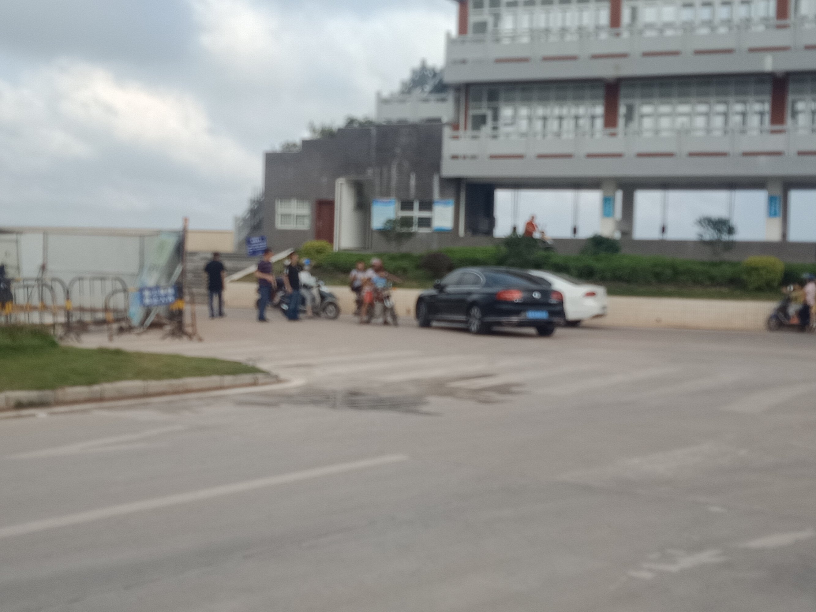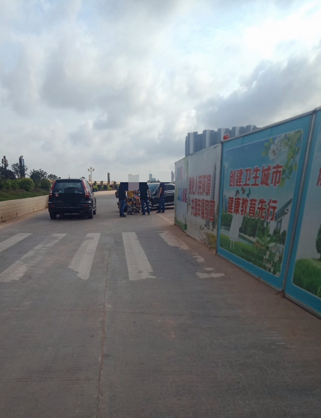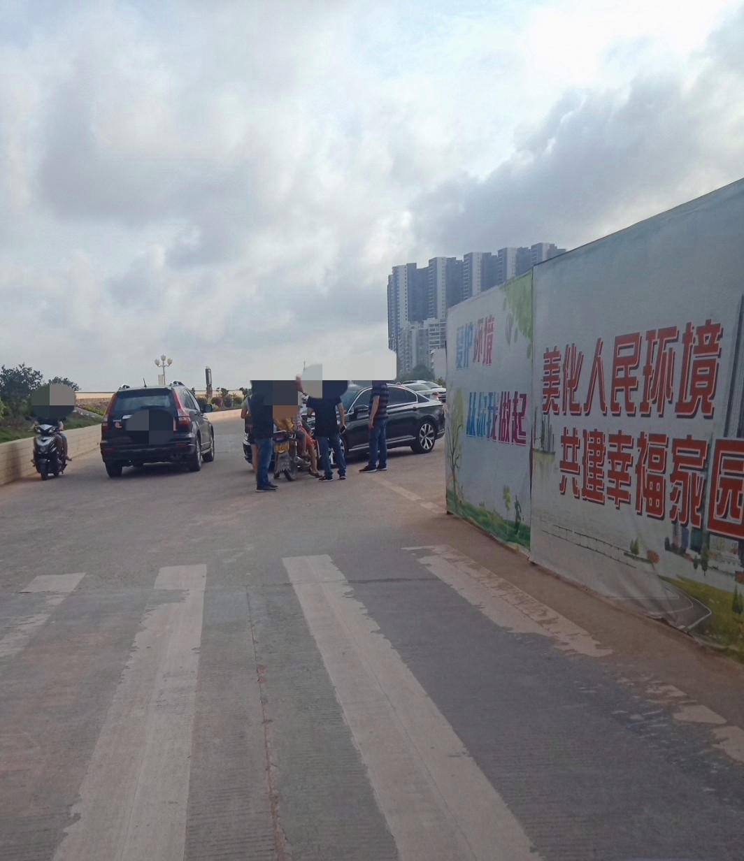 如下图就有些磨擦事件,虽不伤及人,或幸亏小车与摩托车速不算好快,诂计是摩托擦下那粤B车的前杠,看现场小车是有偏过这边再转入,或摩托刹不住吧?虽也不大注楚具体事发经过,主要没伤及人,貌似那粤B车主三人也好说话有素质:rose:,最后大家都走开了~