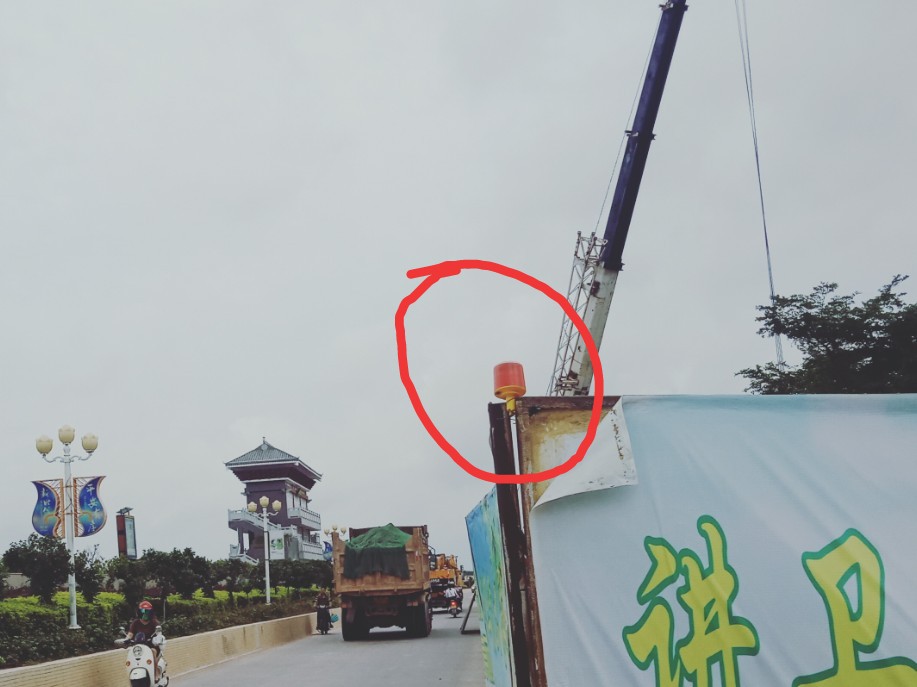 虽然在铁栏上面有红色的电池闪光灯,但貌似冇电了,也不亮也起不了作用~也不知还要施工多久?