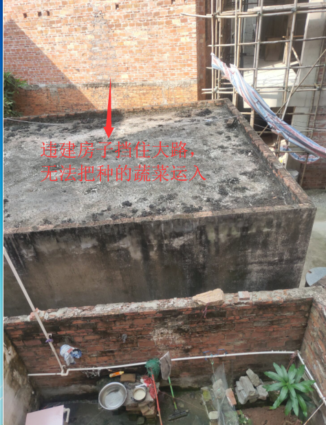 由于被违建的房子挡住了出路,阻碍了我到农园种蔬菜,生活过得惨不忍赌,可电白县陈村政府却视而不见,完全不管人民死活,不肯把违建房子推翻,现在还多次找借口说已建好的违建房子不能推翻!
