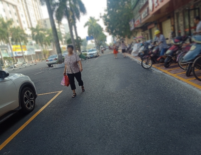 说真的那一段乱停乱放有时有点乱,行人有时也有点难过,