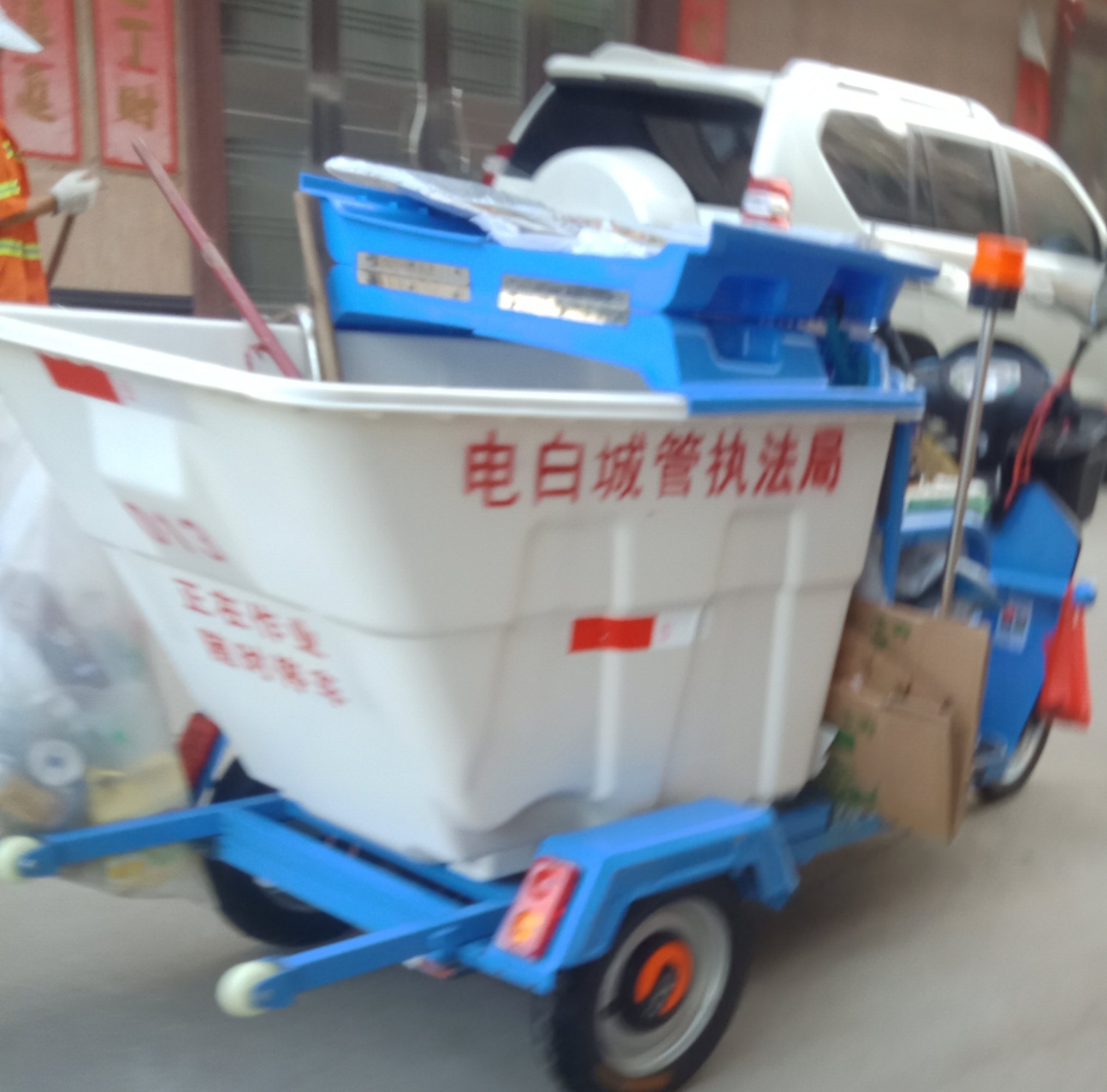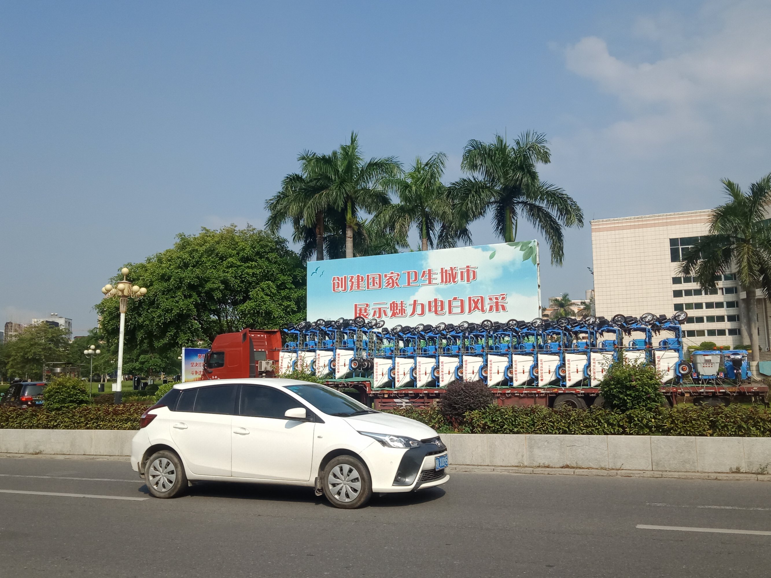 前些天在海滨路见拉了几车新进的电动垃圾清理车