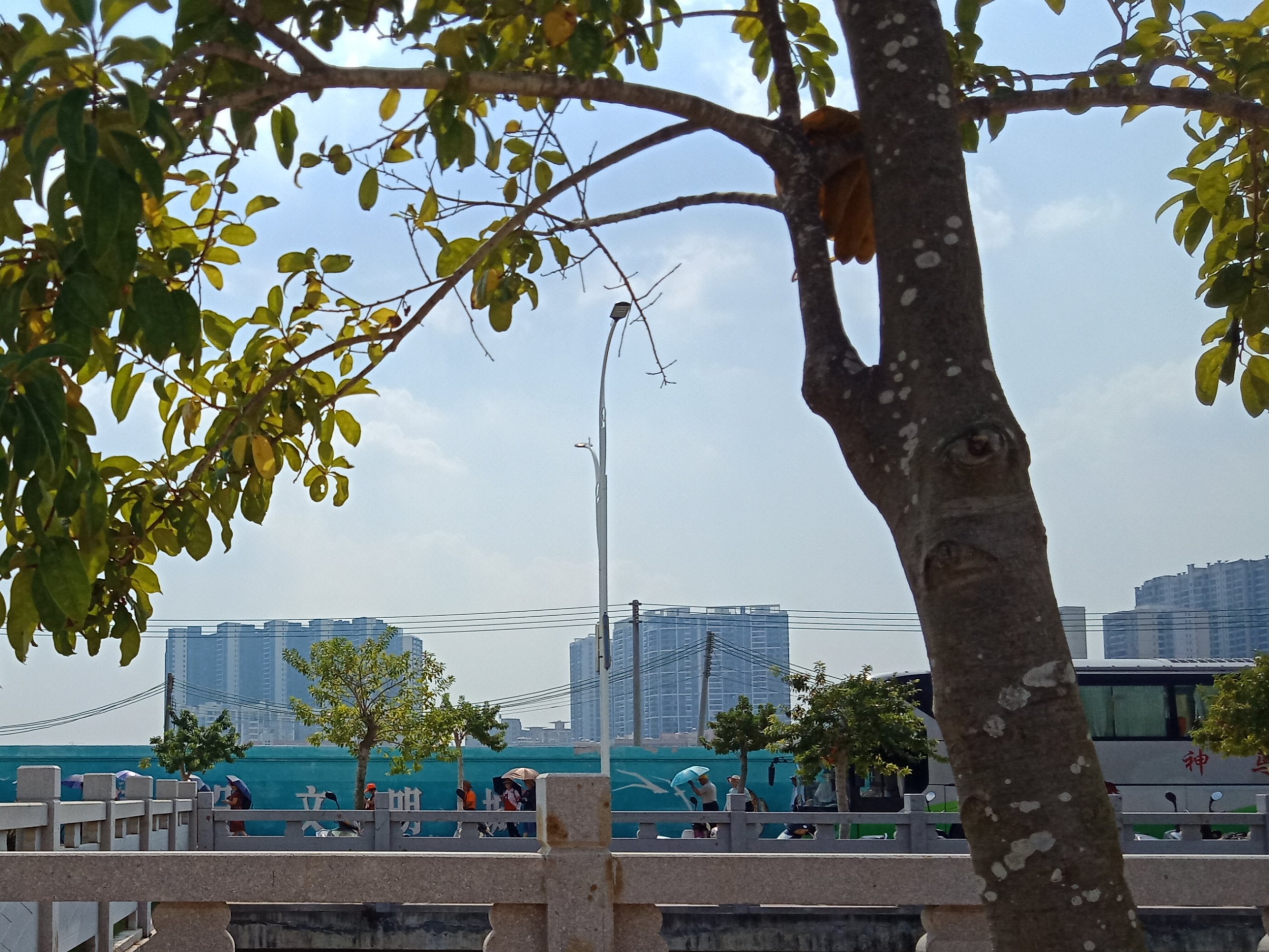 问下游客说是兄弟化州等市区来的??还有个别桂牌等,欢迎!欢迎!虽然多数都戴着帽子拿着雨伞,不过天气有点晒,就算有帽太阳伞等隔着还是挺热的,辛苦了!不过无论去哪,出门在外游玩都是这样,不是晒就是累?不过那栈道也还是安装有凉亭,或也不必一囗气走完,也可在个别凉亭坐坐息息!!:biggrin: