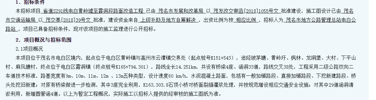 听说博贺湾大桥至水东湾大桥路段今月先行开工?根据规划安排,广东滨海旅游公路电白段按照分步分段实施项目建设,首先实施茂名博贺湾大桥至水东湾大桥路段(简称:先行段),先行段线路起点与在建博贺湾大桥西引道相接,线路走向由东至西基本沿着海岸线走向,途经面前坡、新屋仔、那尾村、山沟南、杨梅村、龙山、邓村、朴村、外海,至水东湾湾口后转折向北,从西葛村西侧跨越青福港,经过青潭尾后继续北走,终点于水东碧桂园东侧接上已建环城东路,线路总长18.65km。该项目采用一级公路标准建设,双向六车道,设计时速60km/h,采用沥青混凝土路面,路基标准断面宽为33.5m,全线共设特大跨海桥梁1座,桥梁总长1086.4m,涵洞28道,线路交叉32处。全线配套建设市政给水管、雨水管、污水管、照明工程及绿化工程,设置养护中心1处,驿站2处。总投资预算约18.9亿元,其中建安费约11.8亿元。