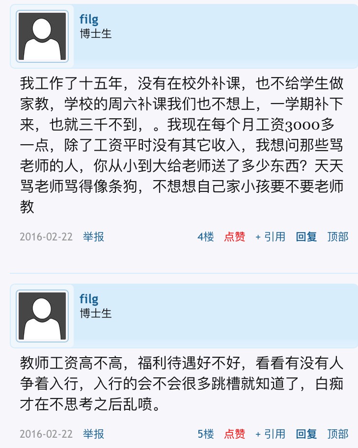 谁是电白人渣,大家一目了然,在木X中学这次县管校聘中,你纠集了孔子及几个同党,妄图起事,借机打击学校和教局,抹黑政府,被众多网友识破阴谋,原来你是某校的,你看看以前你的回帖,整天谈钱说工资,从来没有交流过教学心德,没有花过半点心思在学生身上,你害了多少电白学子?拿着国家的钱粮还仇恨政府,十足汉奸,我八死你屋外家三祖