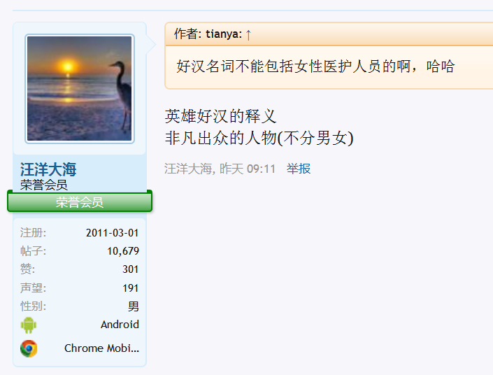 一笑兄弟你错了,我开始时就是想不通汪老师为何好汉包括女人,看到他的解释后我是非常认同的,我发现我的学识认知还不够,希望你也不要一错再错下去。。好汉就是指男儿大丈夫,勇敢有为的仗义男子,试问汪洋大海,谁给你权力释义为不分男女,真是笑话。就算是国家最高法院都无权如此释义。