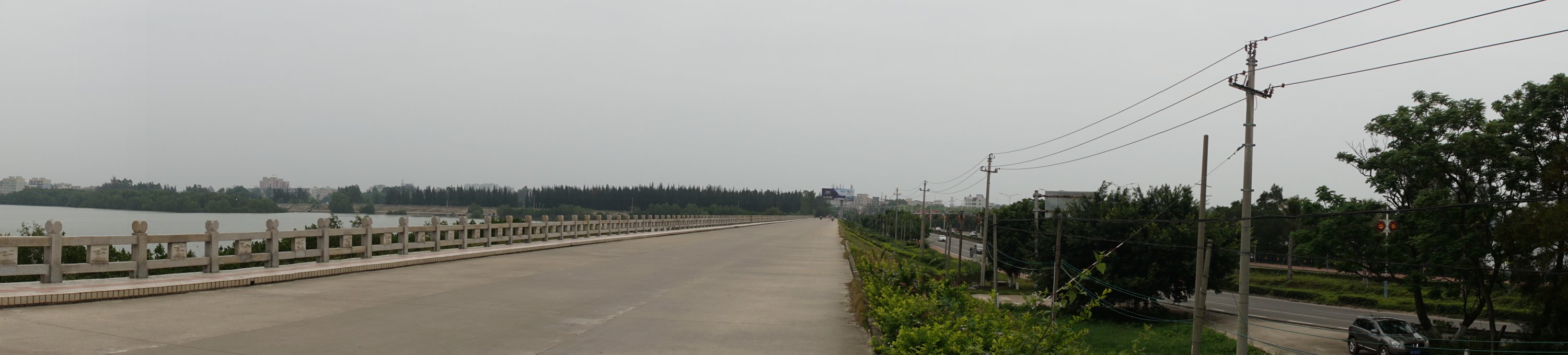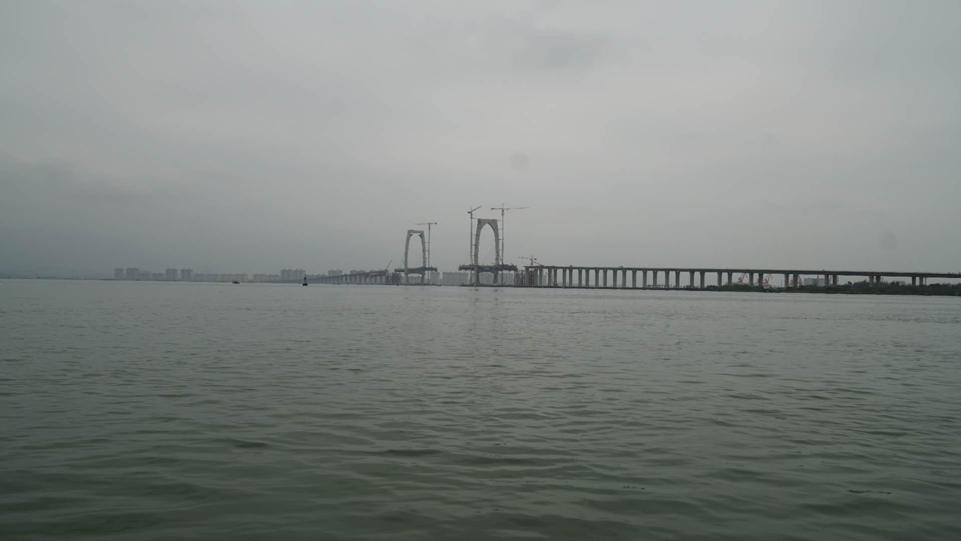 行四五里,水东湾大桥映入目帘,远处天阴灰白一片,唯灯塔色彩夺目: